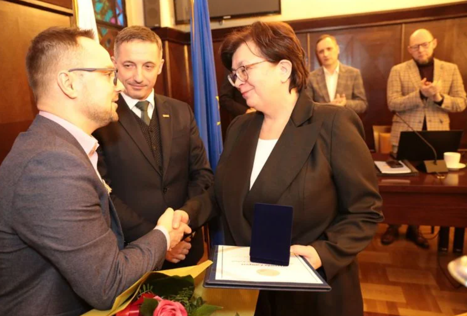 Sekretarz Miasta odebrała wyróżnienie z rąk prezydenta Rybnika Piotra Kuczery oraz Przewodniczącego Rady Miasta Rybnika Wojciecha Kiljańczyka, w obecności władz miasta oraz rybnickich radnych.