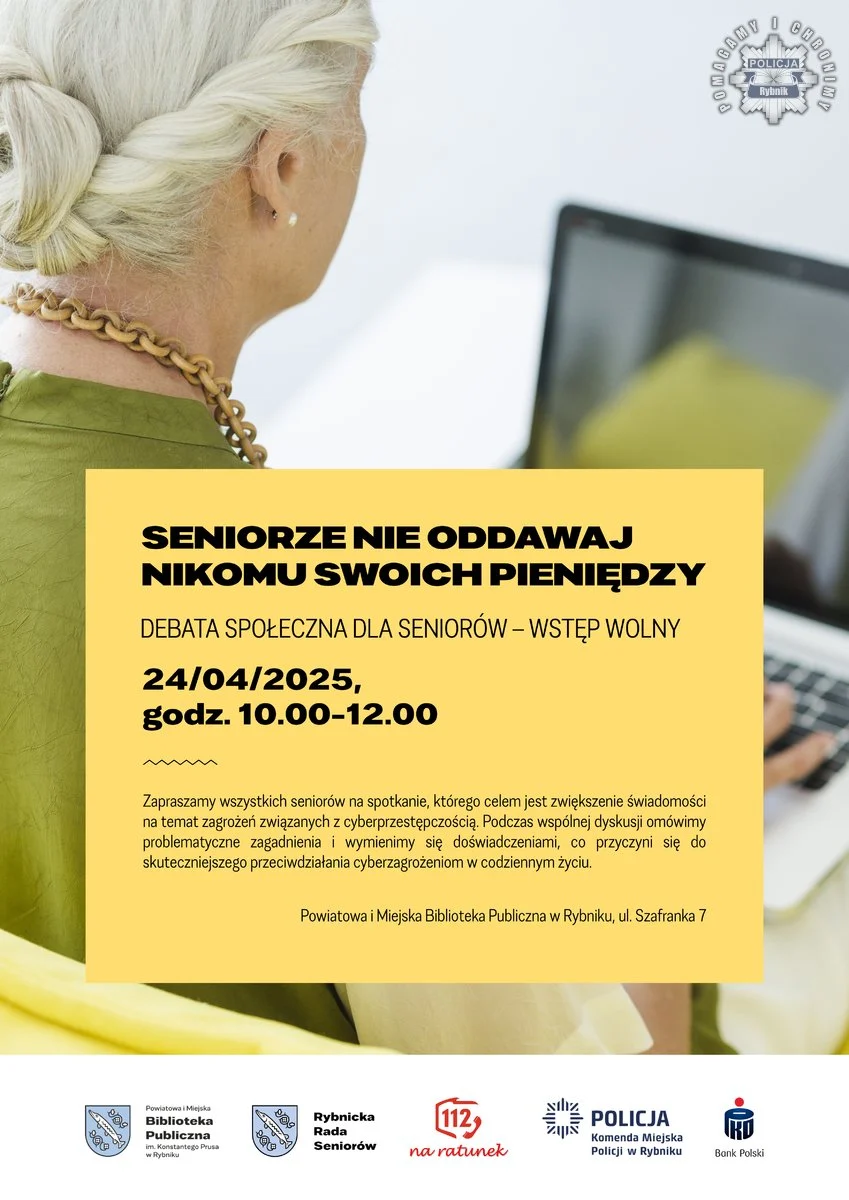 Debata organizowana jest przez Komendę Miejską Policji w Rybniku we współpracy z Rybnicką Radą Seniorów, PKO Bankiem Polskim oraz Powiatową i Miejską Biblioteką Publiczną. Udział w wydarzeniu jest bezpłatny i nie wymaga wcześniejszej rejestracji.