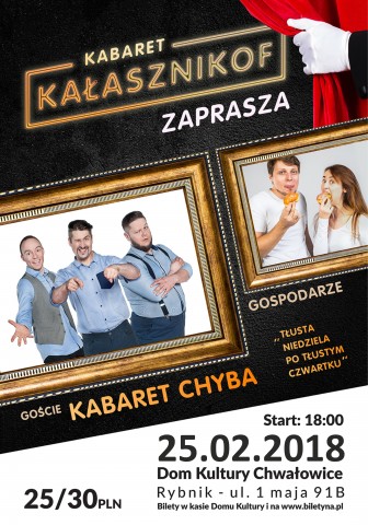 “Pomysł na imprezę jest banalnie prosty. Zapraszamy do Rybnika czołowych artystów komediowych. Takich, którzy są maksymalnie skuteczni w rozśmieszaniu, a przy tym ich twarze nie zdążyły się jeszcze znudzić publiczności.” – mówi Łukasz Zaczek, założyciel kabaretu Kałasznikof. “Na dobry początek zapraszamy wrocławski Kabaret Chyba.