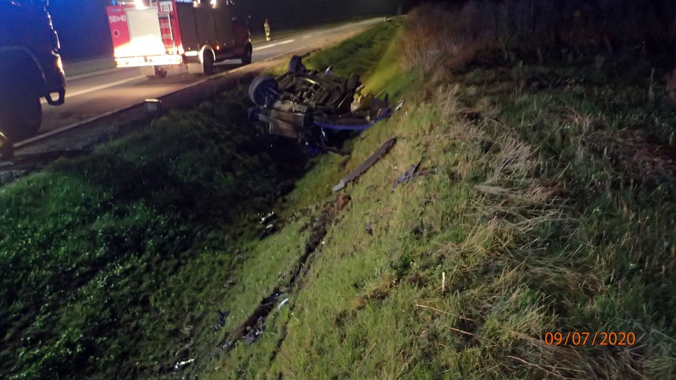Policjanci ruchu drogowego rybnickiej komendy ustalili, że kierująca skodą jechała z nadmierną prędkością, straciła panowanie nad pojazdem i uderzyła w krawężnik, po czym jej samochód dachował w przydrożnym rowie.