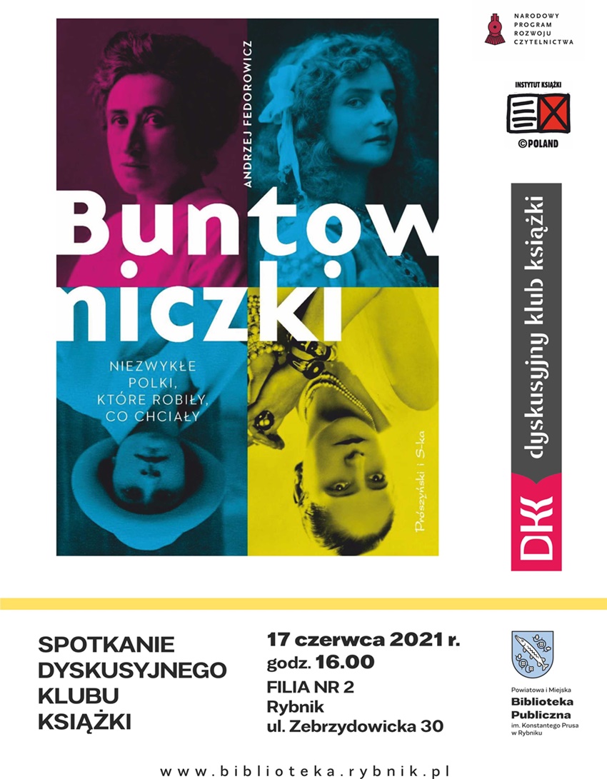 Spotkanie odbędzie się w czwartek 17 czerwca o godzinie 16:00 w filii nr 2 PiMBP przy ul. Zebrzydowickiej 30 w Rybniku. Wstęp jest wolny. Tym razem uczestnicy będą rozmawiać o książce pt. “Buntowniczki. Niezwykłe Polki, które robiły, co chciały” Andrzeja Fedorowicza.