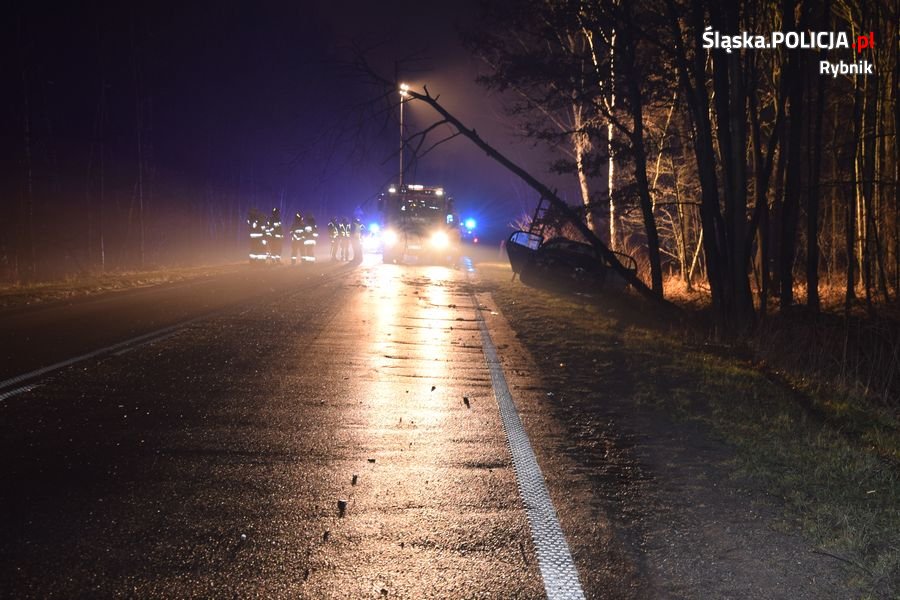 Do wypadku doszło wczoraj, kilka minut przed 17.00 na ulicy Mikołowskiej w Przegędzy. Jak wstępnie ustalili policjanci z wydziału ruchu drogowego rybnickiej komendy, kierujący oplem 23-letni mieszkaniec Czerwionki-Leszczyn, jadąc w kierunku Rybnika, nie dostosował prędkości do panujących warunków na drodze, zjechał na zakręcie drogi na przeciwny pas ruchu i uderzył w jadącego z naprzciwka volkswagena. Następnie zjechał na pobocze i uderzył w przydrożne drzewa. Jedno z nich przewróciło się na samochód. Aby wyciągnąć pasażerkę z tego pojazdu, potrzebna była pomoc strażaków.