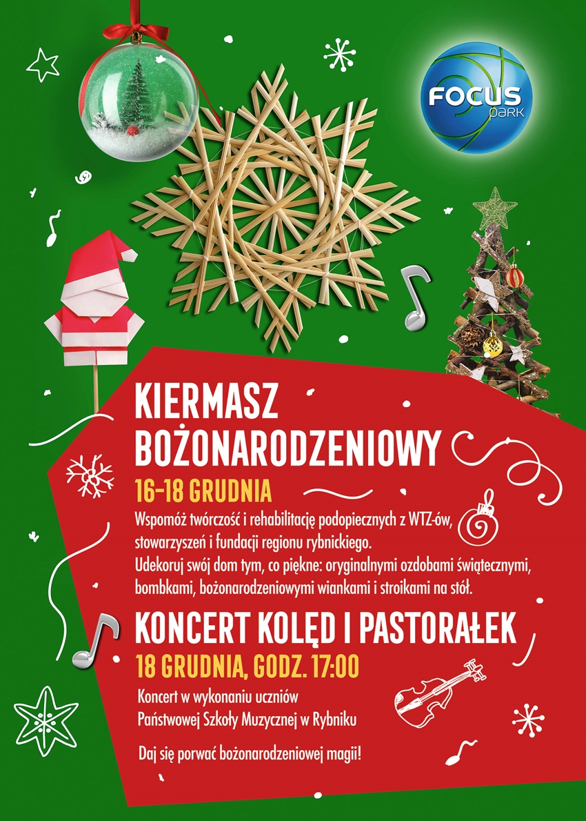 Kiermasz bożonarodzeniowy i wspólne kolędowanie w Focus Park w Rybniku!