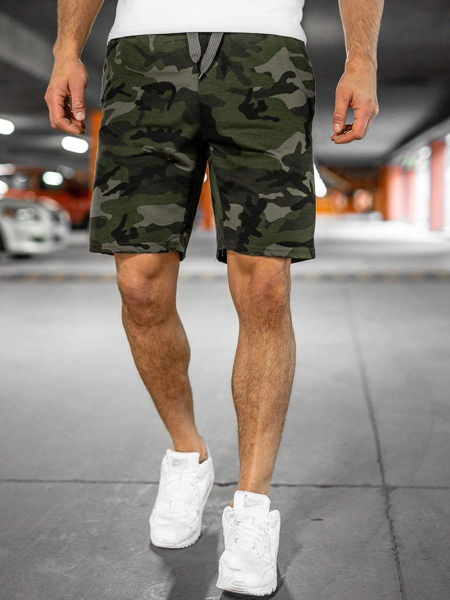 Khaki dresowe krótkie spodenki męskie moro