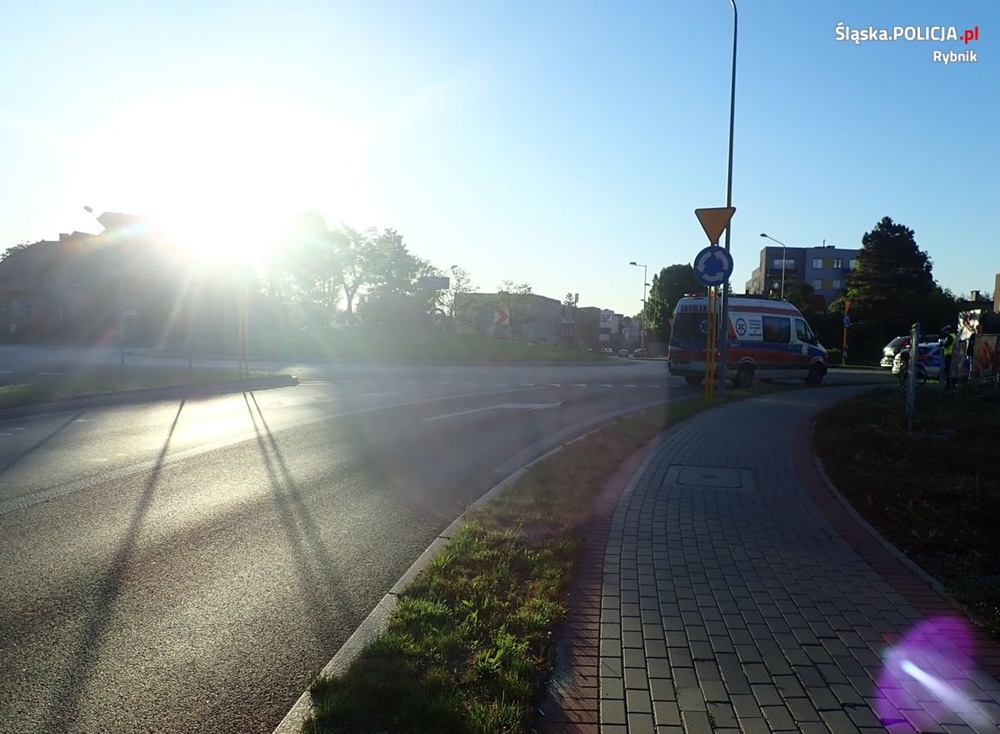 Do zdarzenia doszło przed godziną 6.00, na skrzyżowaniu o ruchu okrężnym w Rybniku. Jak ustalili mundurowi, 52-letni kierujący oplem, wjeżdżając na skrzyżowanie z ulicy Kotucza, pasem jazdy na wprost, nie udzielił pierwszeństwa przejazdu będącemu już na skrzyżowaniu 50-letniemu rowerzyście. Mężczyzna doznał urazu nogi i został zabrany przez pogotowie ratunkowe do szpitala. Badanie alkomatem wykazało, że uczestnicy zdarzenia byli trzeźwi.