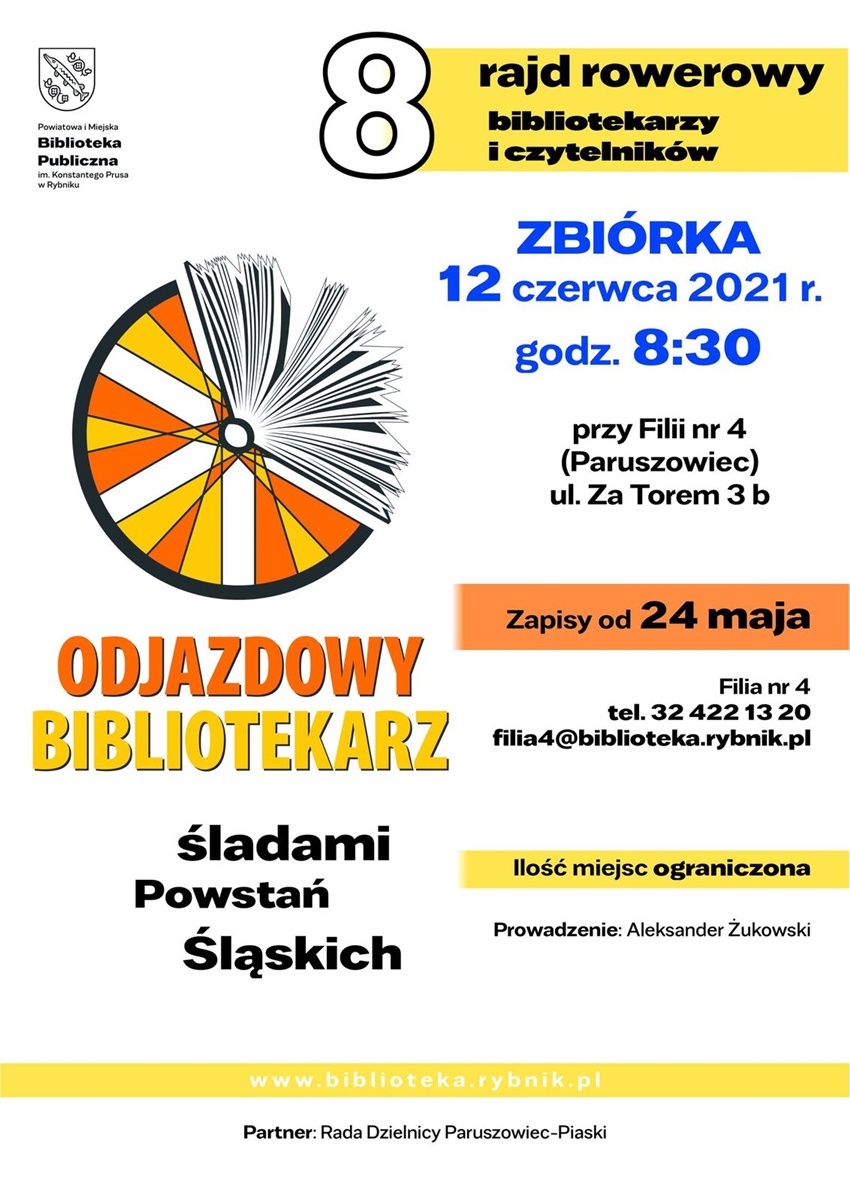 Filia nr 4 PiMBP w Rybniku zaprasza na ósmy rajd rowerowy pod nazwą “Odjazdowy Bibliotekarz”.