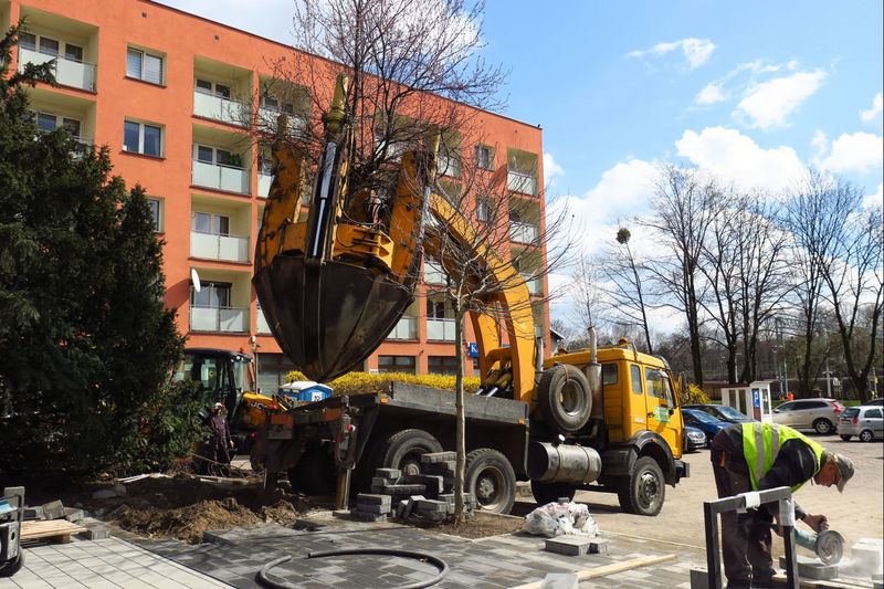 Przeznaczona pierwotnie do wycięcia, kilkunastoletnia ozdobna wiśnia, rosnąca przy ul. Kościuszki, na terenie powstającego centrum przesiadkowego, “przesiadła się” kilkadziesiąt metrów dalej.