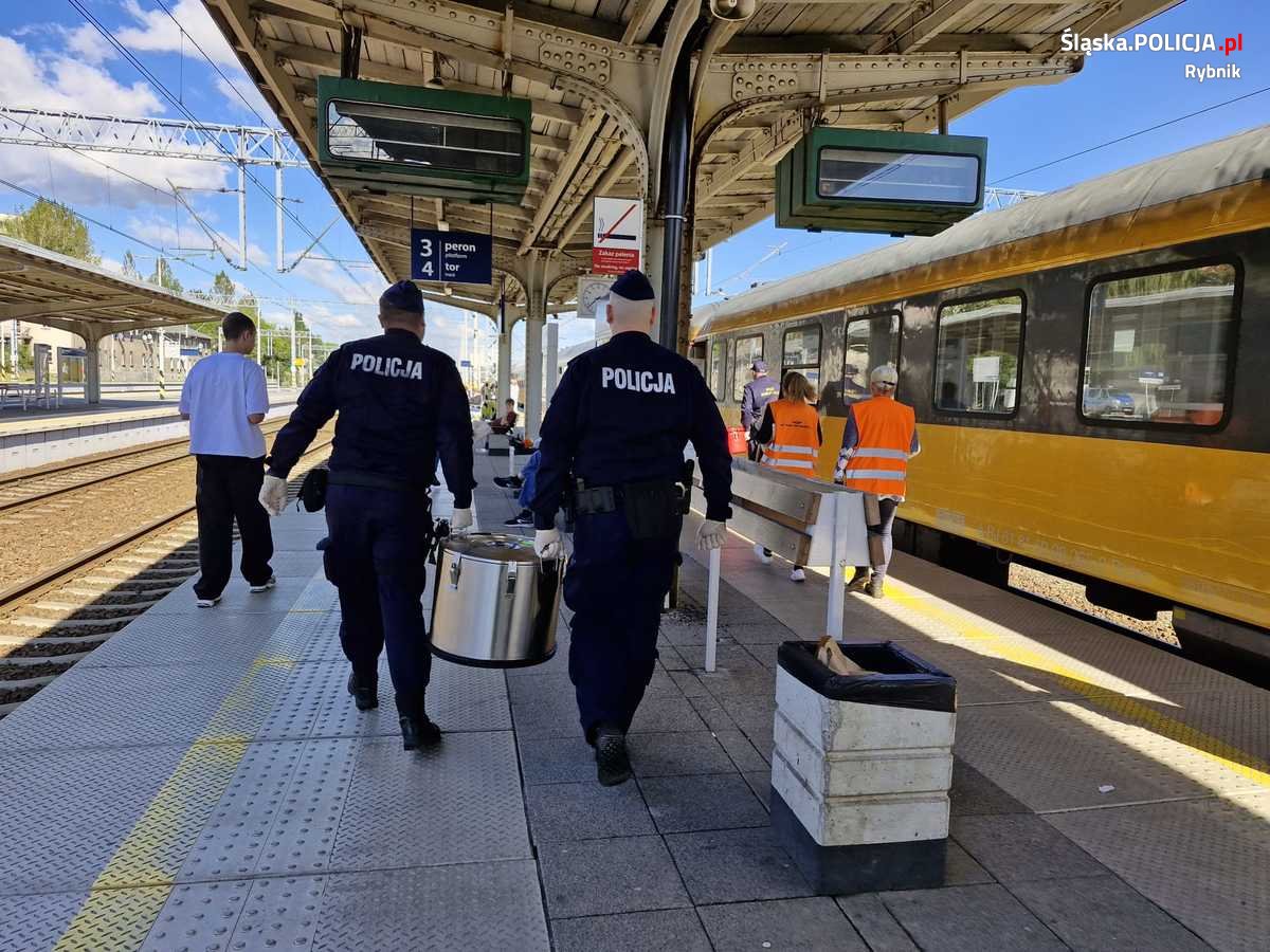Rybniccy policjanci i służby w akcji – pomoc dla pasażerów zatrzymanego pociągu