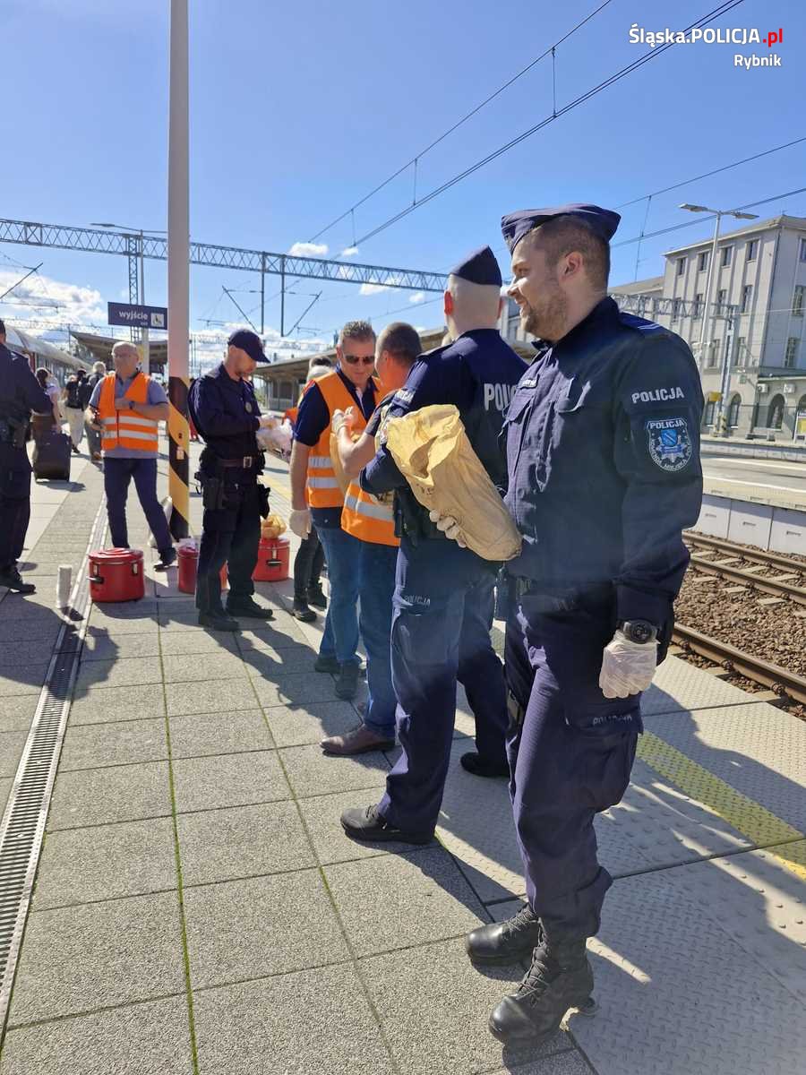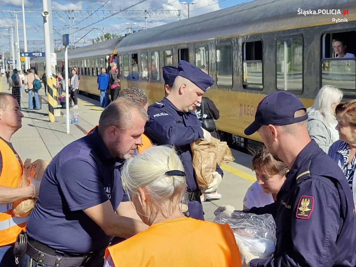Rybniccy policjanci wraz z innymi służbami i rybnickimi urzędnikami przystąpili do działania. Dzięki sprawnej organizacji, każdy otrzymał ciepły posiłek i napój. Podczas rozdawania ciepłych posiłków i napojów policjanci zaopiekowali się również pasażerką, która zgłosiła, że potrzebuje pomocy związanej z koniecznością zmiany opatrunku.