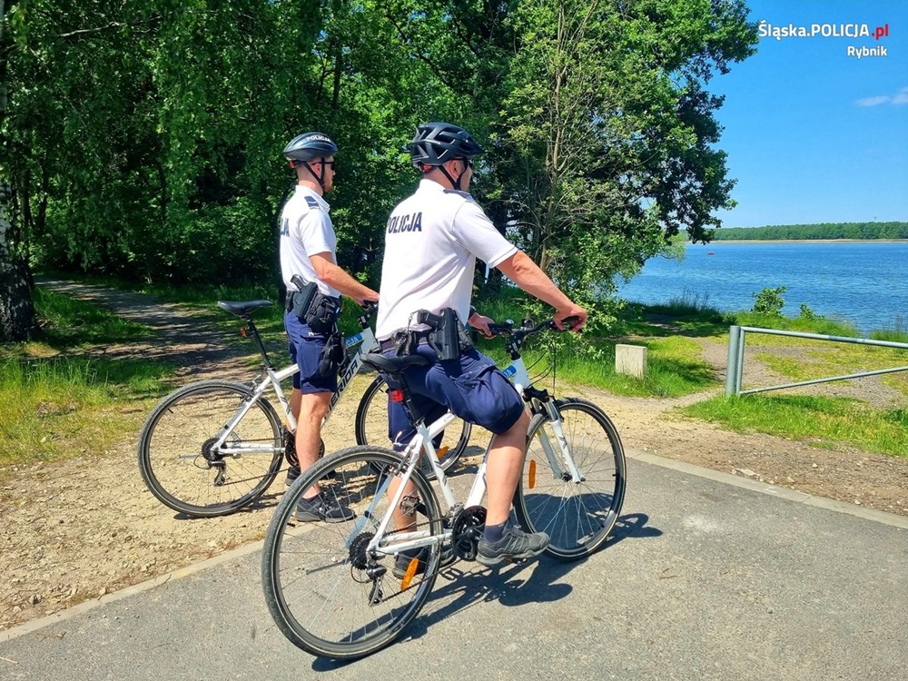 Rybniccy mundurowi dbają o bezpieczeństwo zarówno w okolicy zalewu rybnickiego, jak i na samej wodzie. Stróże prawa, którzy będą zapewniać bezpieczeństwo amatorom sportów wodnych i kąpieli słonecznych, mają do dyspozycji rowery i oznakowaną łódź motorową. Takie środki transportu zapewniają policjantom szybsze dotarcie do miejsca zdarzenia niż radiowóz. Policjanci z grupy rowerowej są nieco inaczej umundurowani niż ci, których możemy spotkać na co dzień na ulicach miast. Cykliści pełniący służbę na rowerze noszą białą koszulkę z napisem „Policja”, a nie, jak jesteśmy przyzwyczajeni – granatową. Policjantów wyróżniają także krótkie spodenki w kolorze granatowym. Zamiast czapki służbowej z daszkiem czy furażerki, mają kaski rowerowe. Wyposażenie i uzbrojenie umundurowanych stróżów prawa jest oczywiście identyczne jak patroli policyjnych.