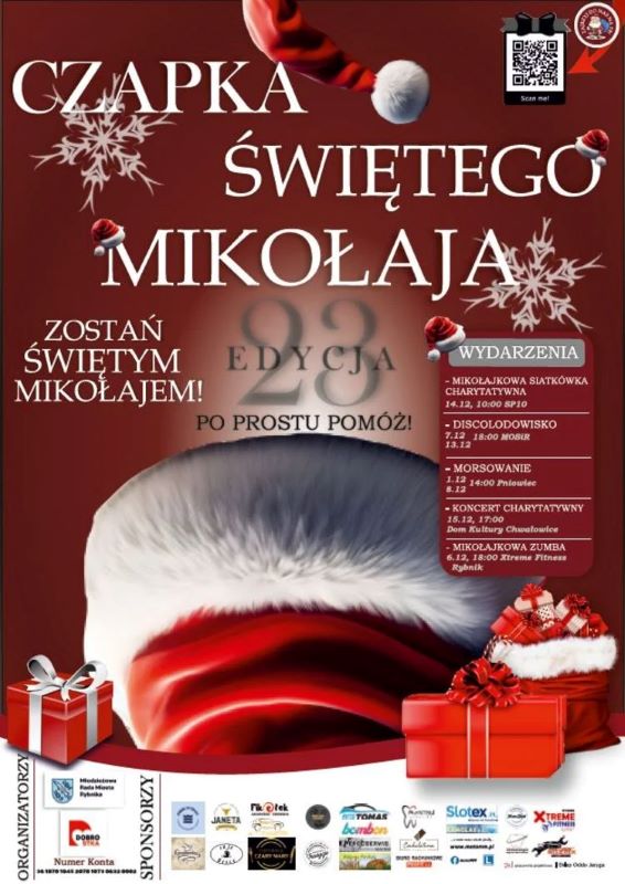 Już po raz 23. Młodzieżowa Rada Miasta Rybnika niesie pomoc najbardziej potrzebującym rodzinom oraz seniorom naszego miasta. Tegoroczna “Czapka Św. Mikołaja” potrwa do 20 grudnia i będzie doskonałą okazją, by podzielić się dobrem w tym magicznym, świątecznym czasie.