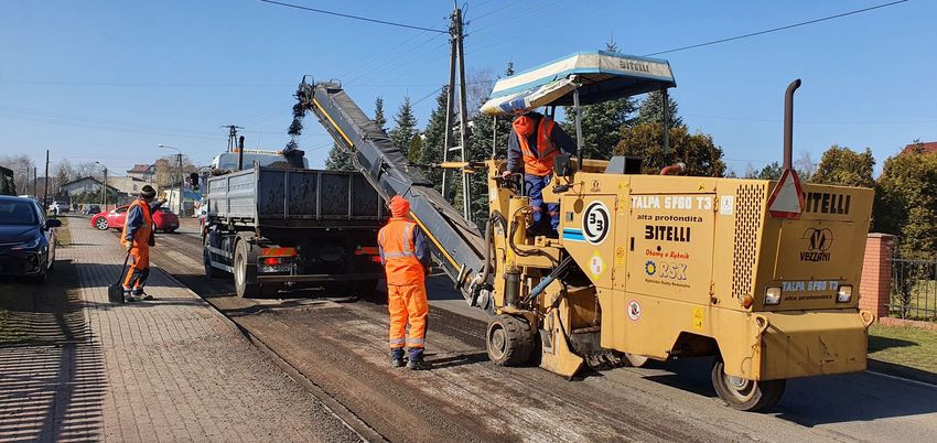 - kiedy tylko temperatura na to pozwoliła uruchomiony został recykler do asfaltu, i za pomocą masy przetwarzanej w tej maszynie prowadzonoremonty przy użyciu 5 brygad roboczych dziennie (3 brygady na zmianie pierwszej i 2 na drugiej)