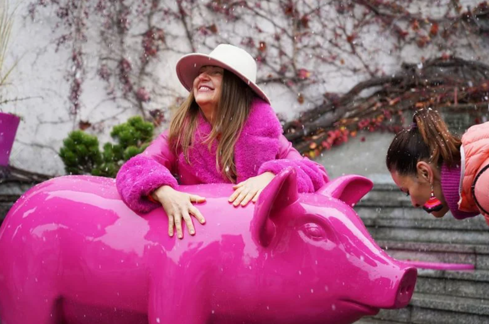 Różowa świnia pod teatrem. Zrób sobie zdjęcie!