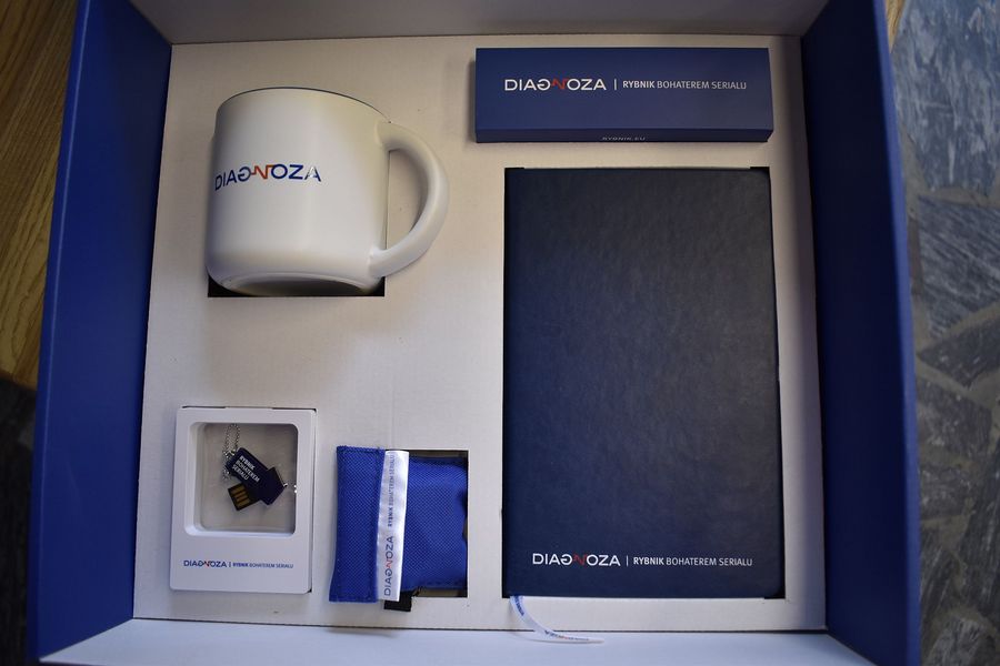 Upominki, promujące Rybnik i kręcony tutaj serial, będą z pewnością sympatyczną pamiątką, zarówno dla samych rybniczan, jak i dla odwiedzających nasze miasto gości. Długopisy w formie strzykawek, breloczki ratunkowe, kubki, notatniki czy pendrive’y oznaczone logo„Diagnozy”, wielbiciele serialu mogą kupić w Punkcie Informacji Miejskiej Halo!Rybnik, przy ul. Jana III Sobieskiego 20. Wiosną diagnozowe pamiątki uzupełnione zostaną o wydany w formie folderu przewodnik po Rybniku, śladami serialowych bohaterów.