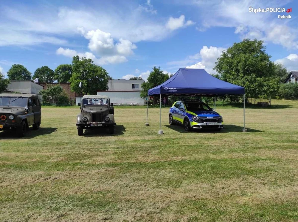 Zainteresowani mieli także możliwość obejrzenia od środka policyjnych radiowozów oraz zaznajomić się ze sprzętem wykorzystywanym przez policjantów w czasie służby. Rybniccy policjanci promowali bezpieczne zachowania, zwracali uwagę na zbliżający się okres wakacyjny i przestrzegali przed zagrożeniami, które mogą wystąpić podczas letniego wypoczynku.