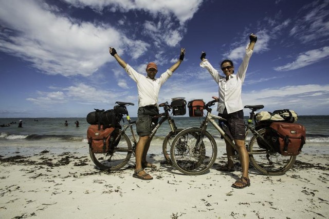 Afryka 2×2 -rowerowa podróż poślubna. Podróż poślubną spędzili na rowerach… w Afryce! Przejechali w pięć miesięcy 11 krajów (Namibia, Botswana, Zambia, Zimbabwe, Mozambik, Malawi, Tanzania, Burundi, Rwanda, Uganda, Kenia), od Atlantyku po Ocean Indyjski, w Mombasie licznik pokazał 7560 km. Zaczęli na pustyni Namib – było 50 st. w cieniu i dokuczał im brak wody, od jednej miejscowością do drugiej bywało 140 km. Między tym – nic. Ani człowieka, ani drzewa, które daje cień. Zambia – zielona, Zimbabwe wbrew pozorom bardzo przyjazne. Burundi i Rwanda najeżone historią… Mierzyli się ze zmęczeniem, złym stanem dróg, chorobami, mentalnością Afrykańczyków, z trywialnie brzmiącymi, ale jakże doskwierającymi kłopotami z poszukiwaniem wody i jedzenia, a także z byciem razem 24 godz. na dobę w warunkach biegunowo odległych od all inclusive. Więcej na temat wyprawy Eli i Tomka można przeczytać w ich książce „Pięć kilometrów do bomby”. Strona: www.afryka2x2.blogspot.com.