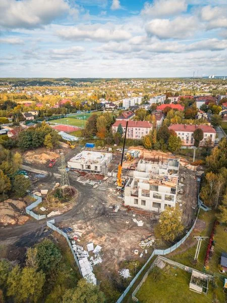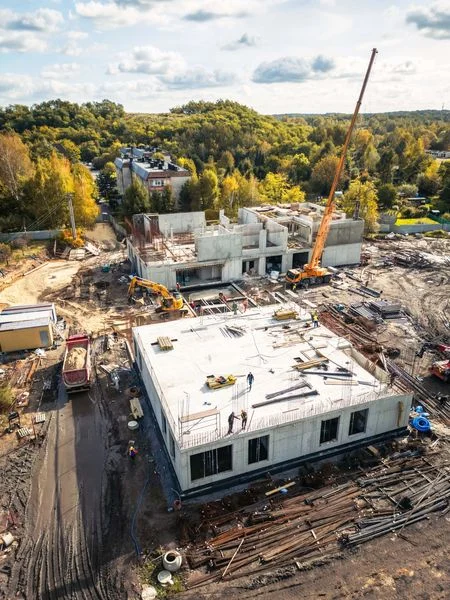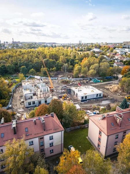 Prace przy budowie rybnickiego hospicjum stacjonarnego nabrały wyraźnego rozpędu – efekty najlepiej widać z lotu ptaka.