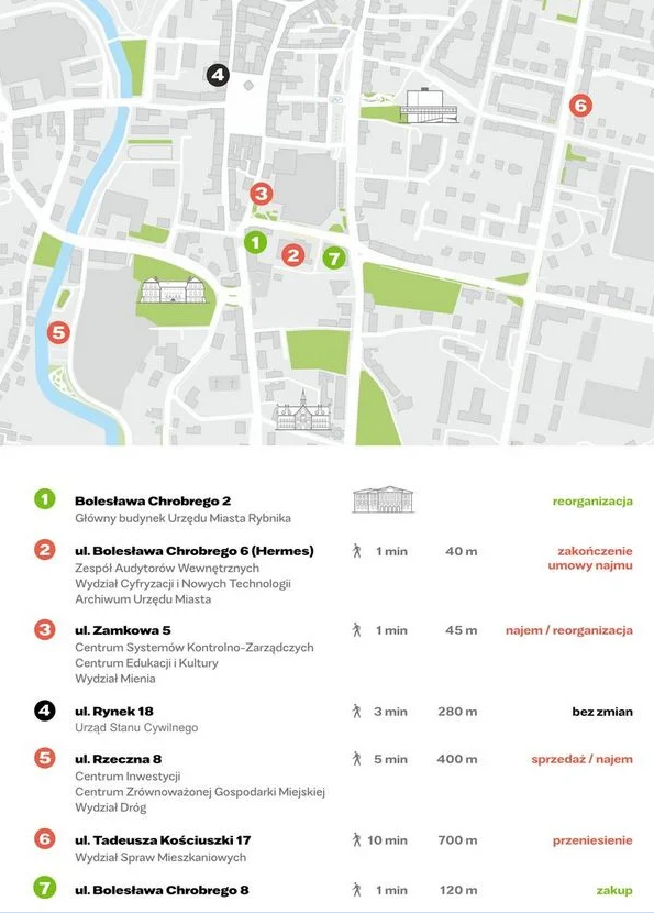 Przypomnijmy – budynek urzędu zlokalizowany obok targowiska przy ul. Rzecznej 8 (który docelowo zostałby sprzedany) zajmują pracownicy Centrum Inwestycji, Centrum Zrównoważonej Gospodarki Miejskiej – Referatu Gospodarki Komunalnej oraz Wydziału Dróg. Z kolei w pomieszczeniach wynajmowanych w “Hermesie” pracuje urzędowy Zespół Audytorów Wewnętrznych oraz Wydział Cyfryzacji i Nowych Technologii. Część pomieszczeń wykorzystywana jest też jako miejskie archiwum.