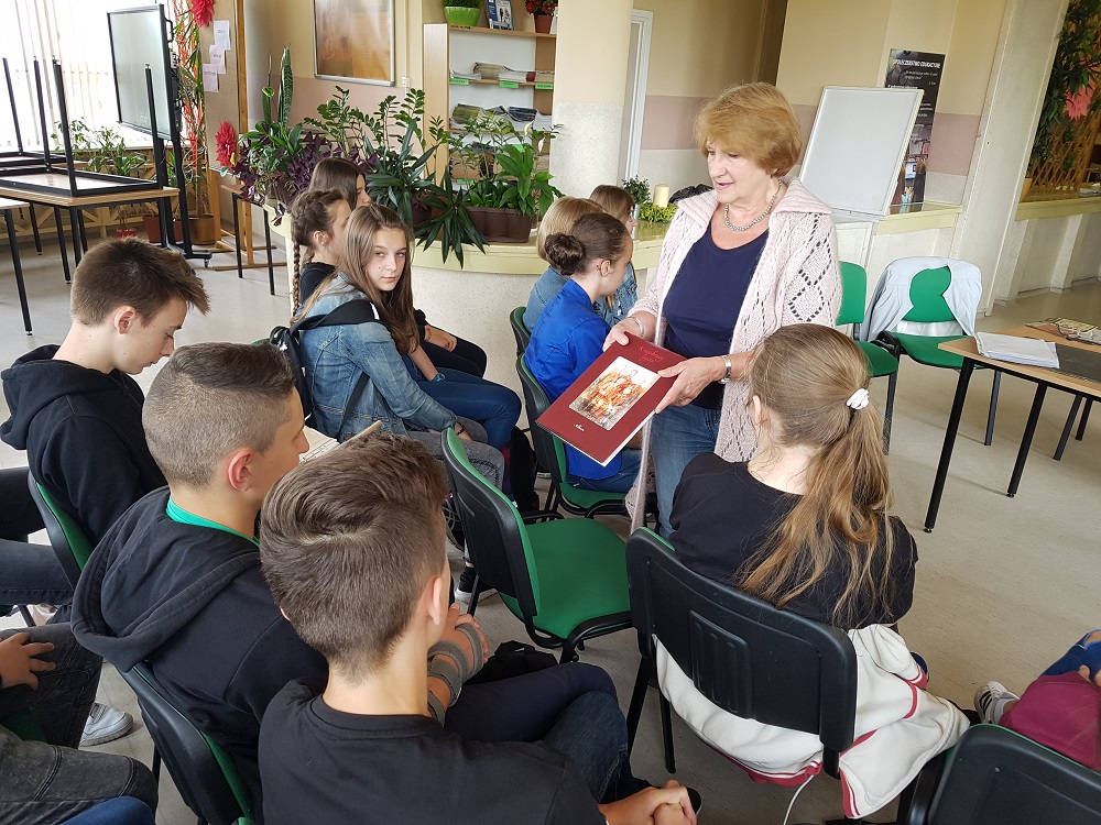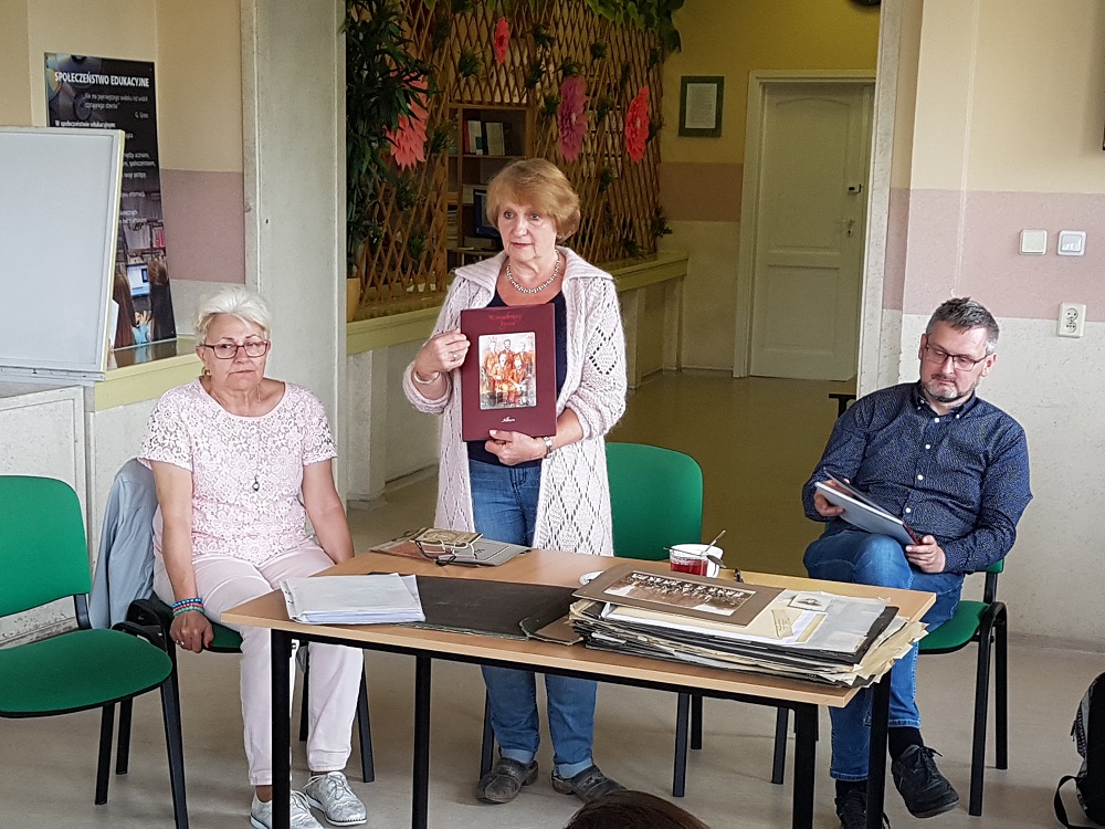 Momy czasym kole siebie mondrych i zasłużonych ludzi, ale czas robi swoji. Starziki umiyrajom a młodzi niy zawsze jich słuchali i ludzki żywota idom w niepamiyńć. Bestoż fest my som radzi, co na zaproszyni p. Grażyny Szmidt, przijechali ku nom Elżbiyta Bimler- Mackiewicz i Jacek Kamiński. Łopowiadali łoni ło Maksymilianie Basiście i ło ksionżce, kiero ło nim napisali. Ci, co byli na spotkaniu mieli łogromne szczynści połoglondac i potrzimać w rynce roztomańte pamiontki. Jak żech sie spytała Kamińskigo czy nie boji sie dować tego szkolorzom do rynki, padoł, że te papiory muszom żyć, bo inacy ni majom taki wartości.