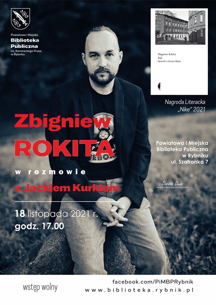 Powiatowa i Miejska Biblioteka Publiczna w Rybniku zaprasza na spotkanie ze Zbigniewem Rokitą, autorem książki pt. “Kajś. Opowieść o Górnym Śląsku” i laureatem Nagrody Literackiej “Nike” 2021.
