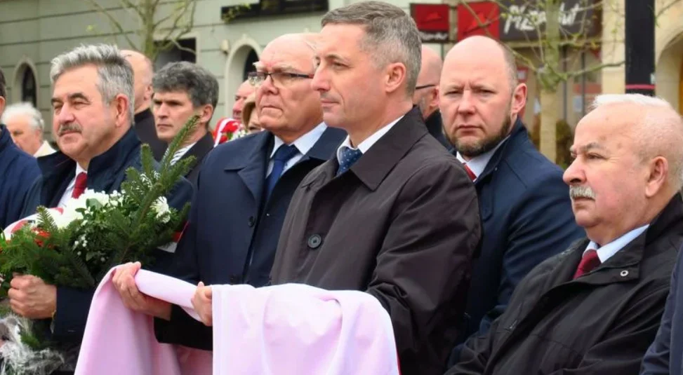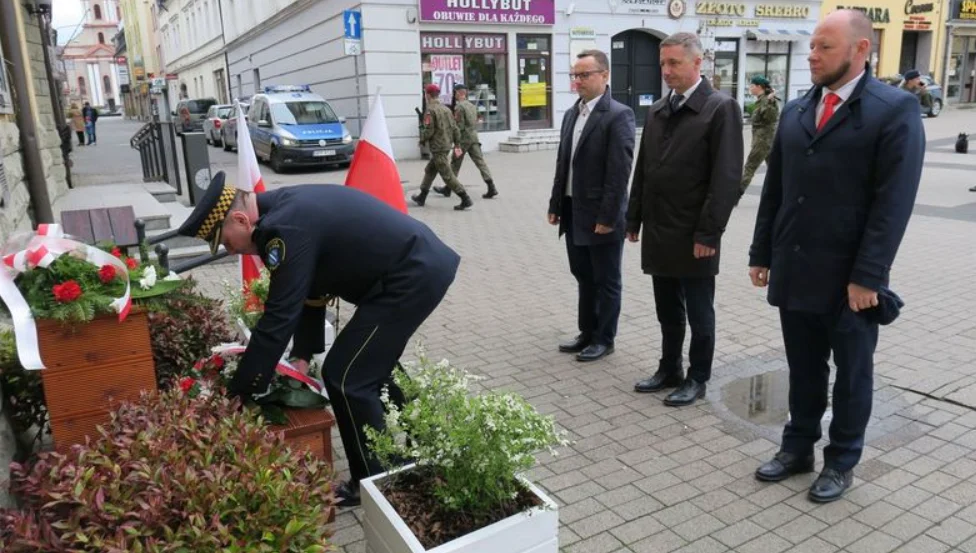 Po mszy delegacje złożyły hołd przed pomnikiem Jana Pawła II, a następnie uczestnicy uroczystości, pod przewodnictwem orkiestry i mażoretek, przemaszerowali na rynek, gdzie przy dźwiękach hymnu państwowego nastąpiło wciągniecie na maszt flagi państwowej oraz złożenie kwiatów pod tablicami pamiątkowymi.
