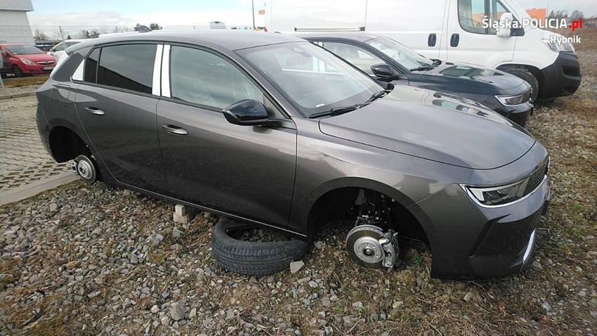 Do zdarzenia doszło w nocy z z 9 na 10 marca. Z terenu ogrodzonej posesji salonu samochodowego w Rybniku, przy ulicy Żorskiej, skradziono 20 kół na aluminiowych felgach z zaparkowanych tam nowych pojazdów. Straty, w tym zniszczenia samochodów spowodowane przez sprawców, oszacowano na kwotę około 60 tysięcy złotych. W wyniku podjętych działań, kryminalni ustalili i zatrzymali dwóch mężczyzn w wieku 21 i 24 lat, a także 21-letnią rybniczankę.