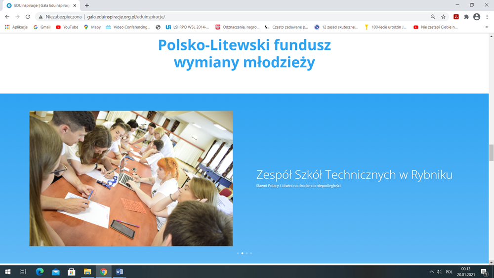 Zespół Szkół Technicznych znalazł się w gronie czterech najlepszych projektów w Polsce nominowanych do prestiżowej nagrody “EDUinspiracje 2020” w kategorii: “Polsko-Litewski Fundusz Wymiany Młodzieży”.