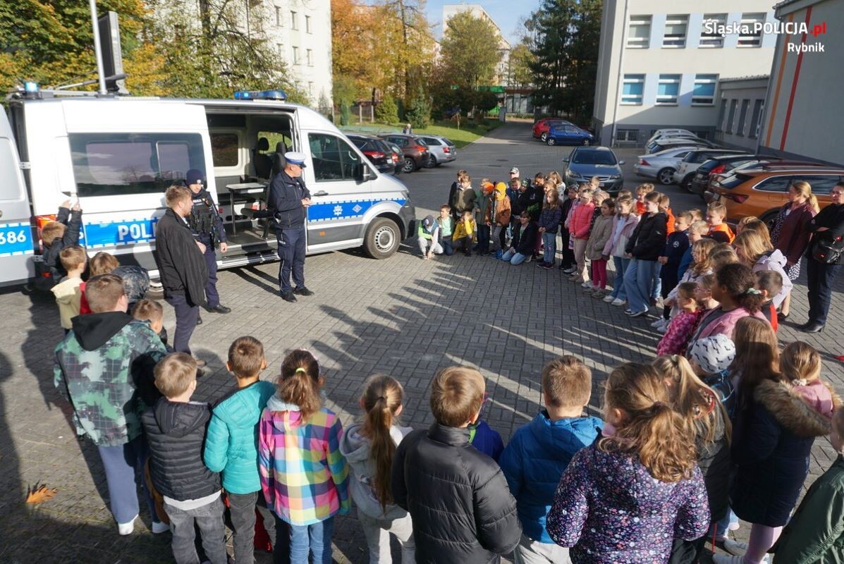 Spotkania policjantów z dziećmi i młodzieżą już na stałe wpisały się w nasz kalendarz. Tym razem rybniccy policjanci spotkali się z dziećmi ze Szkoły Podstawowej numer 11 w Rybniku. Podczas spotkania mundurowi przeprowadzili pogadankę na temat bezpiecznego poruszania się po drogach oraz konieczności noszenia odblasków po zmroku, a także jak należy się zachowywać w różnego rodzaju nagłych sytuacjach w domu, w szkole i na ulicy.