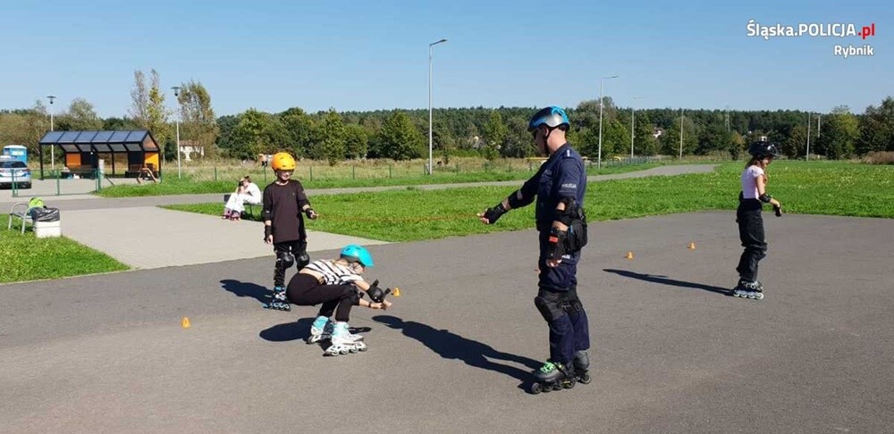 Akcja „Bezpieczny Sk8park & pumptrack” została zainicjowana przez Komendę Wojewódzką Policji w Katowicach. Aspirant sztabowy Gracjan Gutowski, w ramach kampanii "Dzielnicowy bliżej nas" aktywnie włączył się do akcji, realizując jej główne założenia podczas spotkania z młodzieżą na torze rolkowym w Rybniku, przy ulicy Groborza. Podczas spotkania na torze rolkowym mundurowy przybliżył młodzieży zasady bezpiecznego korzystania z tego typu obiektów sportowych. Spotkanie z pewnością połączyło „przyjemne z pożytecznym”. Sport ten może być niebezpieczny i nabawić kontuzji. Dlatego tym bardziej policjant zwrócił uwagę na ochraniacze oraz kaski przypominając, że do najczęstszych powodów wypadków na skateparku należą brak odpowiedniego wyposażenia nieprzystosowanego do wyczynowej jazdy, ale również brawura, czy brak umiejętności. Na zakończenie gier i zabaw z dziećmi i młodzieżą mundurowy rozdał wszystkim ulotki informacyjne promujące bezpieczne zachowania oraz odblaski.