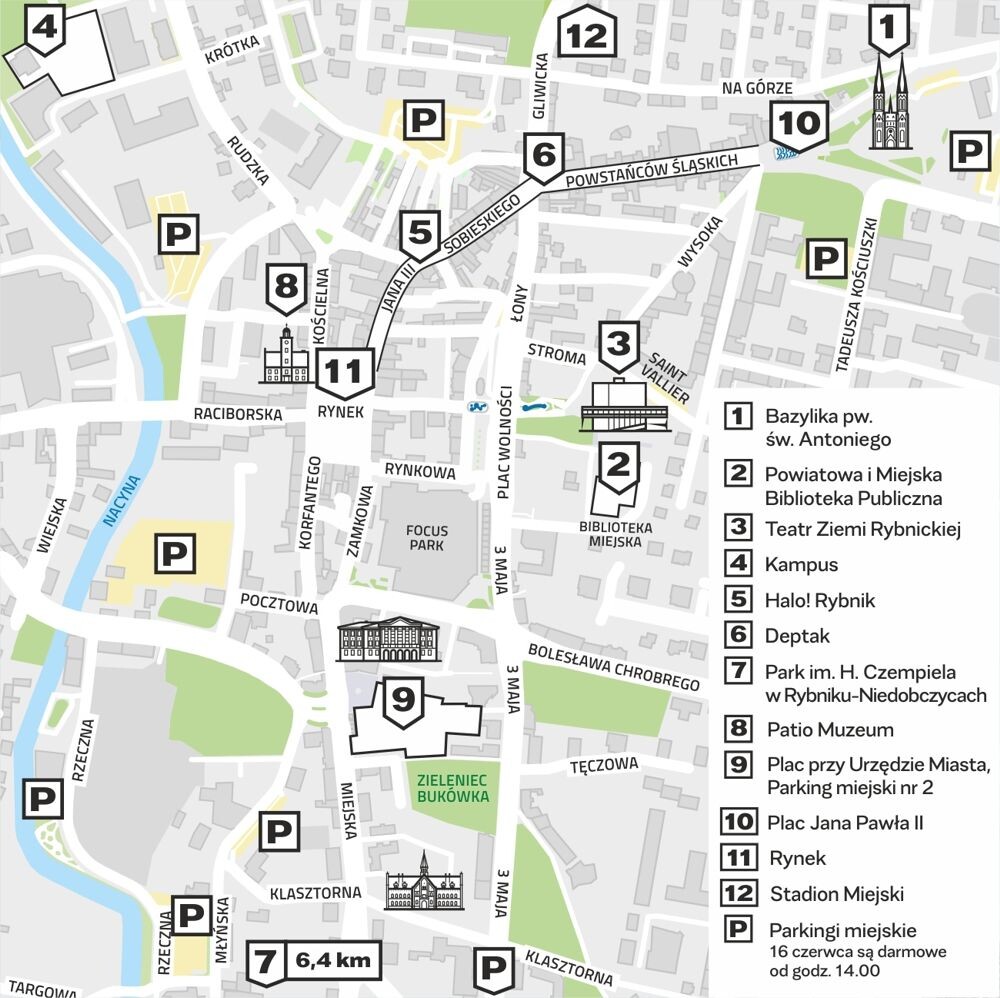 Święto Miasta to także szereg wydarzeń i atrakcji dodatkowych, wśród nich Papieski Rajd Rowerowy, Jarmark Staroci i Rękodzieła, Wioska Ginących Zawodów (pokazy dawnego rzemiosła), piknik na kampusie i animacje dla dzieci. Poza głównymi „arenami”, wydarzenia zorganizowane zostaną także w: bibliotece, Teatrze Ziemi Rybnickiej, halo! Rybnik, Muzeum w Rybniku oraz na deptaku.