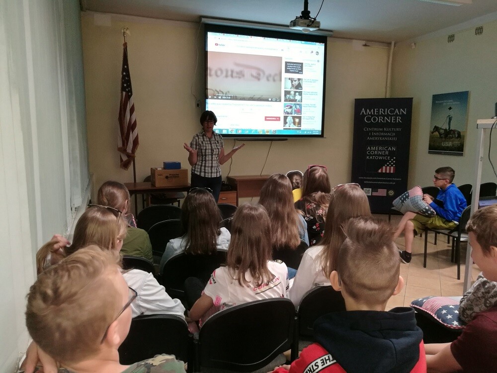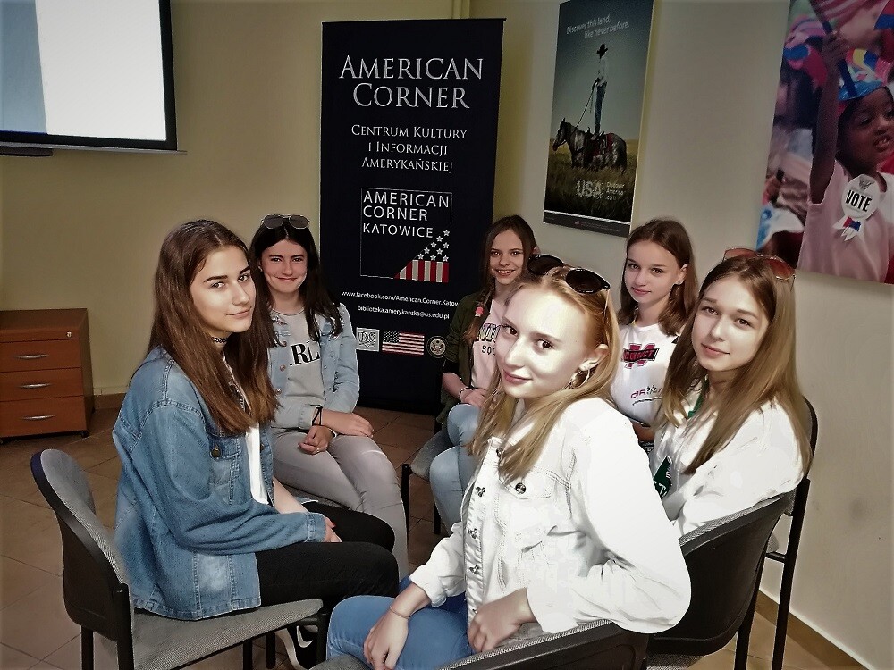 Dnia 14 maja 2018 roku klasa VIIB dwujęzyczna odwiedziła Centrum Kultury i Informacji Amerykańskiej American Corner w Katowicach.