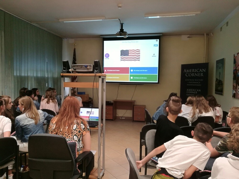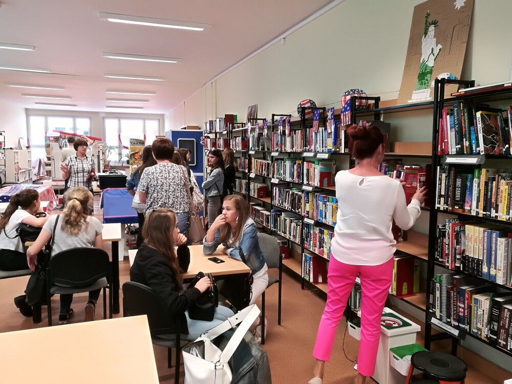 w interaktywnym quizie sprawdzając swoją wiedzę na temat najpopularniejszych symboli, które na trwałe wpisały się w świadomości ludzi na całym świecie i są nierozerwalnie związane ze Stanami Zjednoczonymi. Młodzież mogła także zagrać w popularne amerykańskie gry planszowe oraz zapoznać się z bogatym księgozbiorem w języku angielskim, stanowiącym kreatywną pomoc w nauczaniu języka i kultury Stanów Zjednoczonych. W przyszłości uczniowie mogą również skorzystać z oferty programów wymiany lub wyjazdów edukacyjnych do Stanów Zjednoczonych, poznać język, nabyć ciekawe doświadczenia i osobiście sprawdzić jak żyje się na drugiej półkuli.