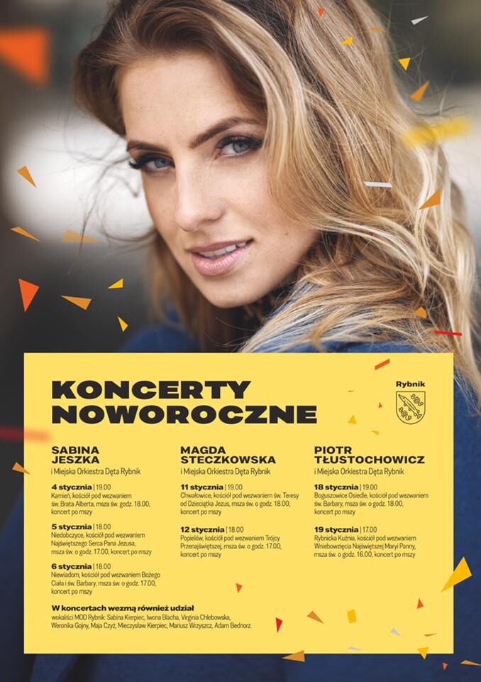 Magda Steczkowska, Sabina Jeszka oraz Piotr Tłustochowicz to artyści, którzy wystąpią w koncertach noworocznych, z towarzyszeniem Miejskiej Orkiestry Dętej Rybnik.