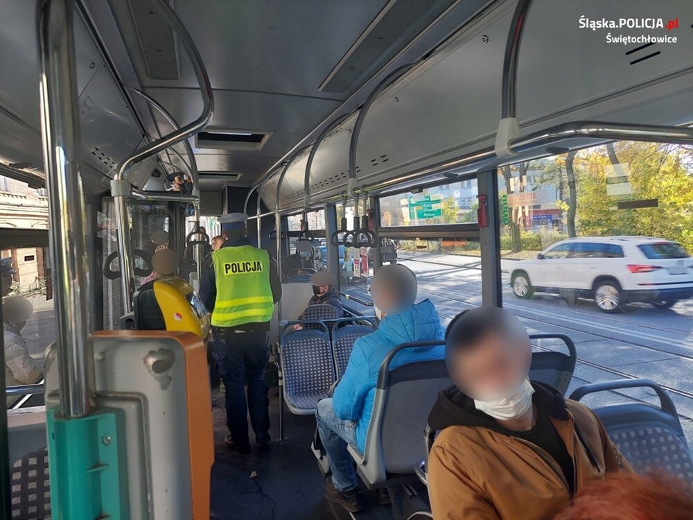 Funkcjonariusze przypominają, że usta i nos trzeba obowiązkowo zasłaniać maseczką m.in.: