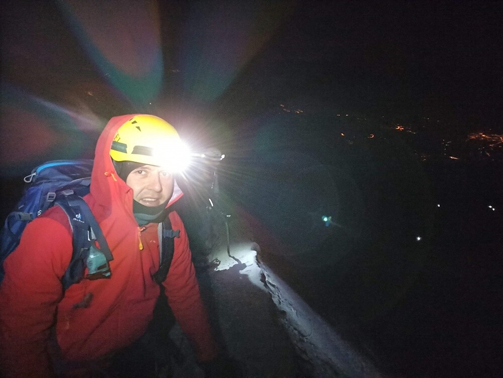 Łukasz Kornatka na najwyższym alpejskim szczycie - Mont Blanc (4810 m), stanął 15 września 2020 r. Etap pierwszy zakładał wyjazd kolejką na Aigulle du Midi (3842 m), następnie zejście na nocleg do schroniska Refuge des Cosmiques (3613 m). Następnego dnia wejście na Mont Blanc du Tacul 4248 m w ramach aklimatyzacji i zjazd kolejką do Chamonix. Po aklimatyzacji i nocy odpoczynku w Chamonix wybrany został klasyczny wariant wspinaczki. Z Les Houches (1008 m) kolejką, a następnie tramwajem (T.M.B) do Nid d’Aigle (2363 m). Stąd ruszają pieszo przez schronisko Tete Rousse (3150 m), dalej kuluarem Rolling Stones (kuluar spadających kamieni) do schroniska Gouter (3817 m), w którym mają nocleg. Około pierwszej w nocy zaczynają ostatni element wspinaczki, kierują się na Dome du Gouter (4304 m) i do schronu Vallot (4363 m). Stąd granią Bosses na szczyt, który zdobywają o godz. 5:55, tuż przed wschodem słońca. Powrót odbywa się tą samą drogą...