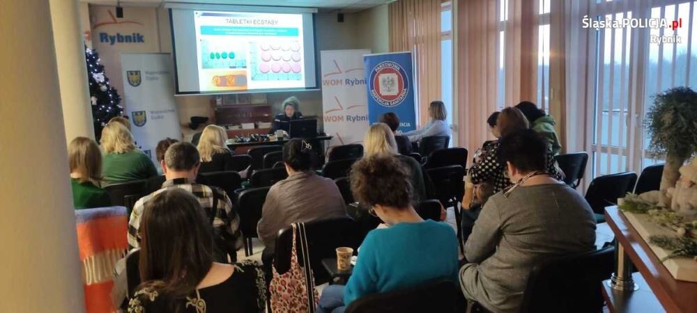 W Regionalnym Ośrodku Doskonalenia Nauczycieli i Informacji Pedagogicznej "WOM" w Rybniku odbyły się warsztaty pod nazwą "Narkotyki, dopalacze – realne zagrożenia dla młodego człowieka oraz odpowiedzialność prawna osób nieletnich". Wydarzenie poprowadziła asp. szt. Angelika Strzebinczyk z Komendy Miejskiej Policji w Rybniku. Całość miała miejsce 17 stycznia 2024 roku.