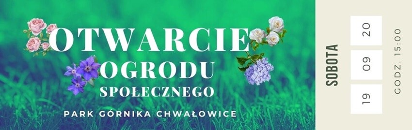Dom Kultury Chwałowice zaprasza w sobotę 19 września 2020 r. o godz. 15.00 do Parku Górnika w Chwałowicach na Piknik - Otwarcie Ogrodu Społecznego. Wstęp wolny.