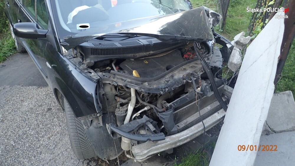 W czwartek około godziny 18.40 dyżurny rybnickiej komendy otrzymał informację o nietrzeźwej kierującej. Policjanci z Wydziału Ruchu Drogowego natychmiast udali się w rejon ulicy Stawowej w Łukowie Śląskim, gdzie czekał świadek, który ujął kierującą renault. Jak ustalili mundurowi, kierująca osobówką nie dostosowała prędkości do warunków panujących na drodze, utraciła panowanie nad pojazdem i wjechała w ogrodzenie. Mieszkanka powiatu rybnickiego podróżowała z czwórką dzieci w wieku 4, 8, 10 i 13 lat. W wyniku tego zdarzenia najmłodszy chłopczyk doznał ogólnych potłuczeń ciała i został zabrany przez pogotowie ratunkowe do szpitala na obserwację.