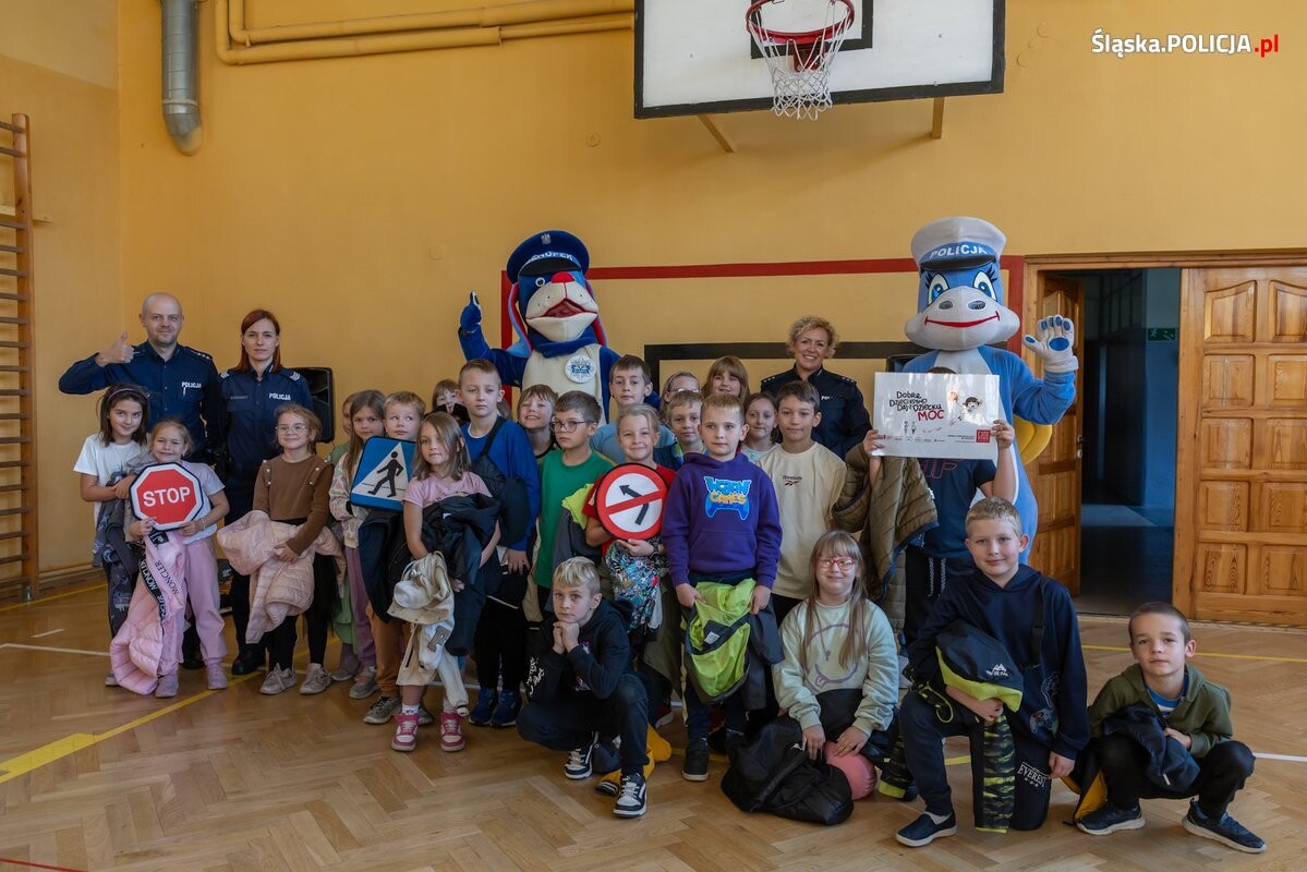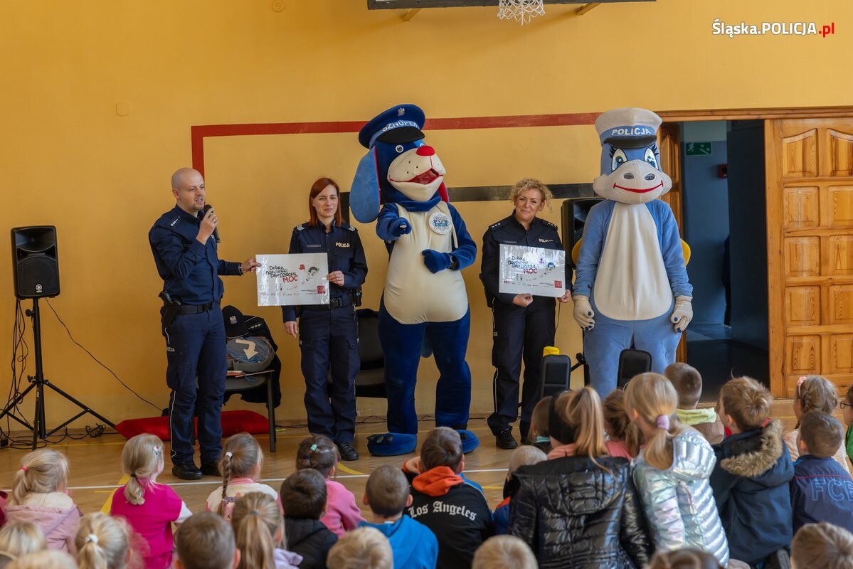 8 października br. funkcjonariusze śląskiego wydziału prewencji połączyli swoje siły z policjantkami i policjantami z Komendy Powiatowej Policji w Będzinie i wspólnie odwiedzili Szkołę Podstawową numer 2 imienia Marii Konopnickiej w Czeladzi w ramach kampanii „Dzieciństwo bez Przemocy”. Podczas spotkania z najmłodszymi uczniami i uczennicami, oprócz kwestii dotyczącej szeroko rozumianego bezpieczeństwa mundurowi przede wszystkim uwrażliwiali ich na krzywdę drugiego człowieka. Omówili czym jest przemoc, jak na nią reagować i gdzie szukać pomocy. W omawianiu tej trudnej i delikatnej problematyki policjantom pomagały policyjne maskotki - pies Sznupek i smoczyca Klara.