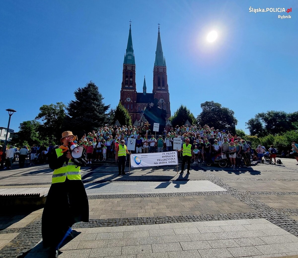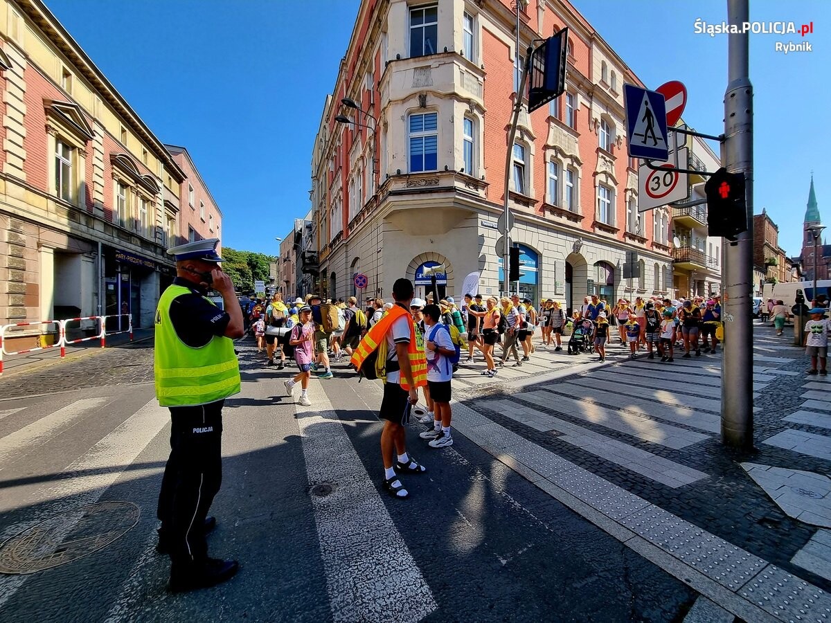 Rybnicka pielgrzymka wyruszyła o godzinie 9.30 spod Bazyliki Mniejszej pw. św. Antoniego w Rybniku. W tym czasie policjanci z rybnickiej drogówki kierowali ruchem na skrzyżowaniach, przez które została wyznaczona trasa pielgrzymki. Mundurowi musieli zapewnić bezpieczne przejście głównymi arteriami miasta 1200 pielgrzymów, którzy podzieleni zostali na kilka grup. Stróże prawa jednocześnie nie mogli dopuścić do „zakorkowania” miasta. Dzięki pracy mundurowych utrudnienia w ruchu w rejonie ulicy Powstańców Śląskich i Gliwickiej nie trwały długo.
