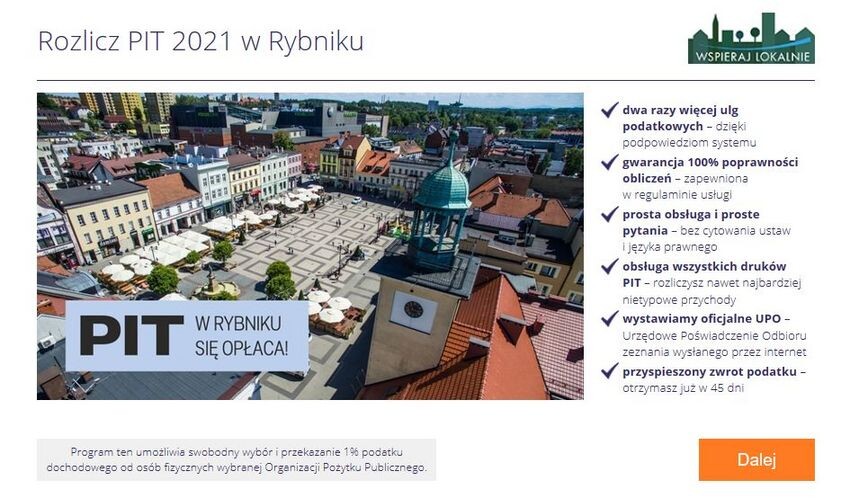 Urząd Miasta zachęca do skorzystania z bezpłatnego programu rozliczeniowego PIT, który umożliwia swobodny wybór i przekazanie 1% podatku dochodowego od osób fizycznych wybranej Organizacji Pożytku Publicznego.