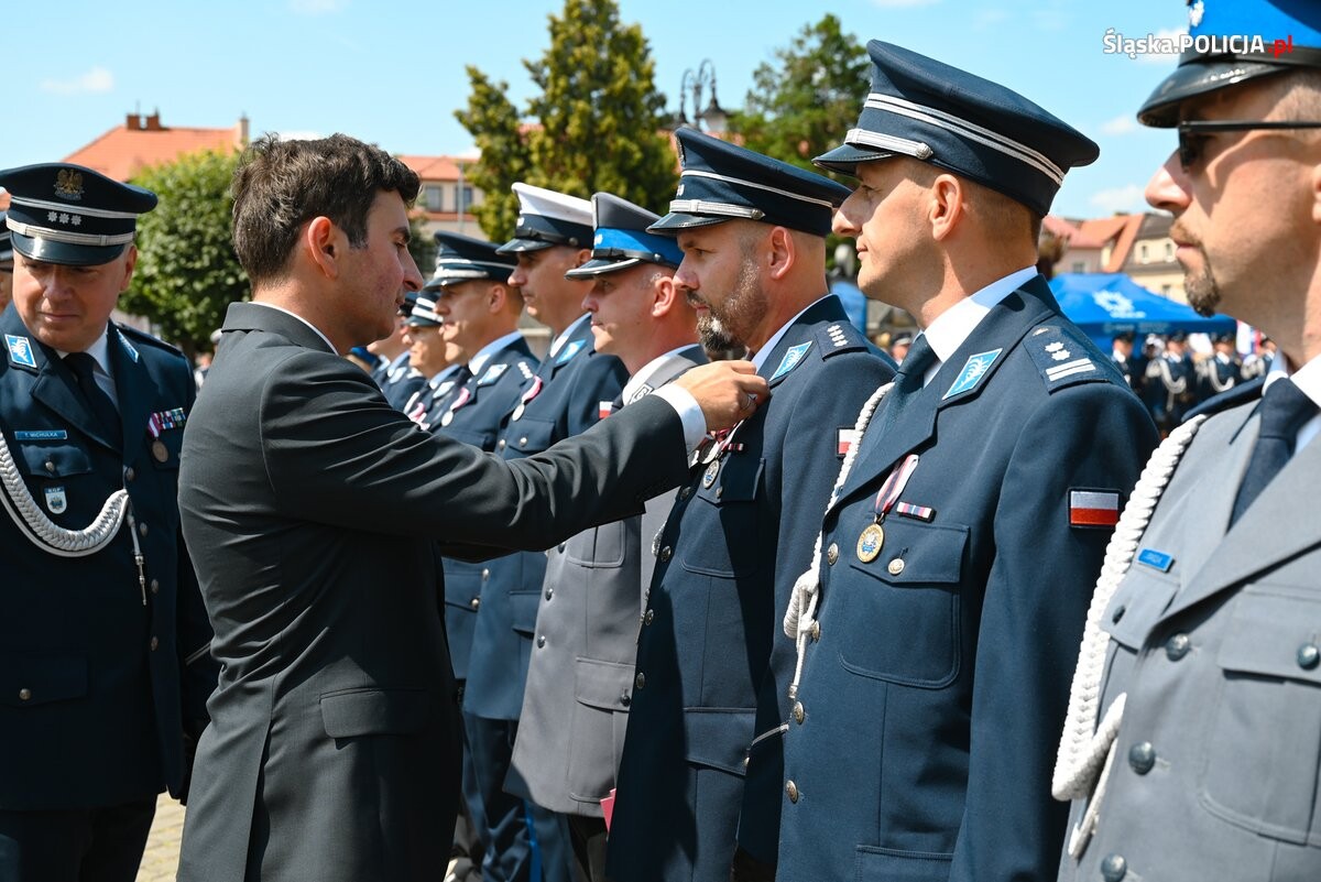 Tego dnia, na żorskim Rynku, 30 policjantów otrzymało akty mianowania na wyższe stopnie policyjne, a blisko 90 nowych policjantów złożyło rotę ślubowania Komendantowi Wojewódzkiemu Policji w Katowicach insp. Mariuszowi Krzystyniakowi.