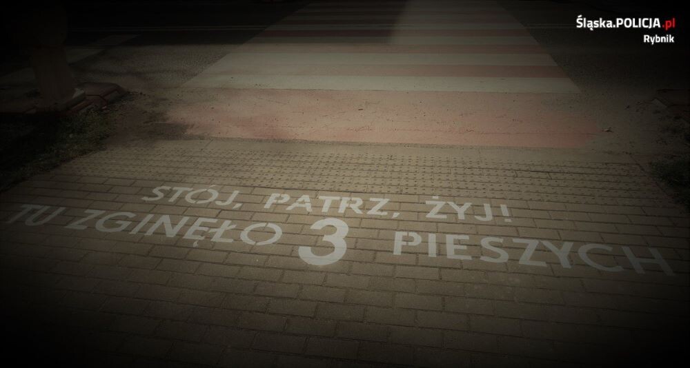 -„Stój, patrz, żyj” to nowa kampania społeczna realizowana przez policjantów z Komendy Miejskiej Policji w Rybniku, wspólnie z Rybnickimi Służbami Komunalnymi oraz Urzędem Miasta Rybnik. Założeniem działań jest podniesienie świadomości o zagrożeniach wynikających z nieostrożnego wejścia na przejście dla pieszych oraz nadmiernego zaufania do kierujących pojazdami. Przed przejściami dla pieszych, gdzie doszło, do największej liczby zdarzeń drogowych naniesiono hasło kampanii oraz liczbę osób poszkodowanych w wypadkach na danej ulicy. - informują rybniccy policjanci