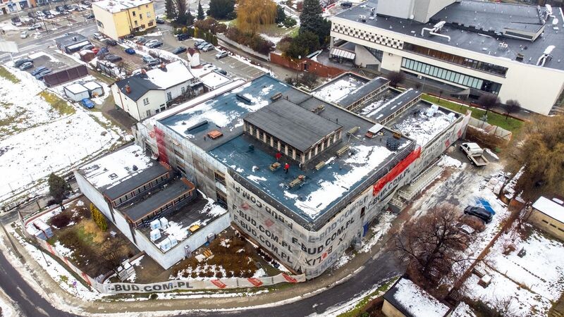 Trwają prace związane z termomodernizacją rybnickiej Powiatowej i Miejskiej Biblioteki Publicznej. To pierwsza od ponad 30 lat istnienia budynku kompleksowa modernizacja jego elewacji.
