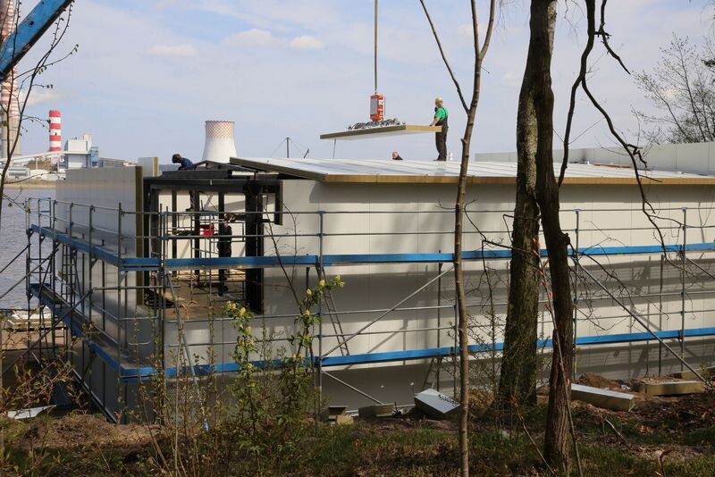 Konieczne było więc doprojektowanie elementów wzmacniających i usztywniających, czego skutkiem było wykonanie konstrukcji stalowej obiektu w oparciu o projekt zamienny, z pominięciem „szkieletów” kontenerów morskich, z jednoczesnym zachowaniem ich modułowych wymiarów jak również gabarytów całego obiektu. W związku z tą sytuacją, prace realizowanie są z opóźnieniem.