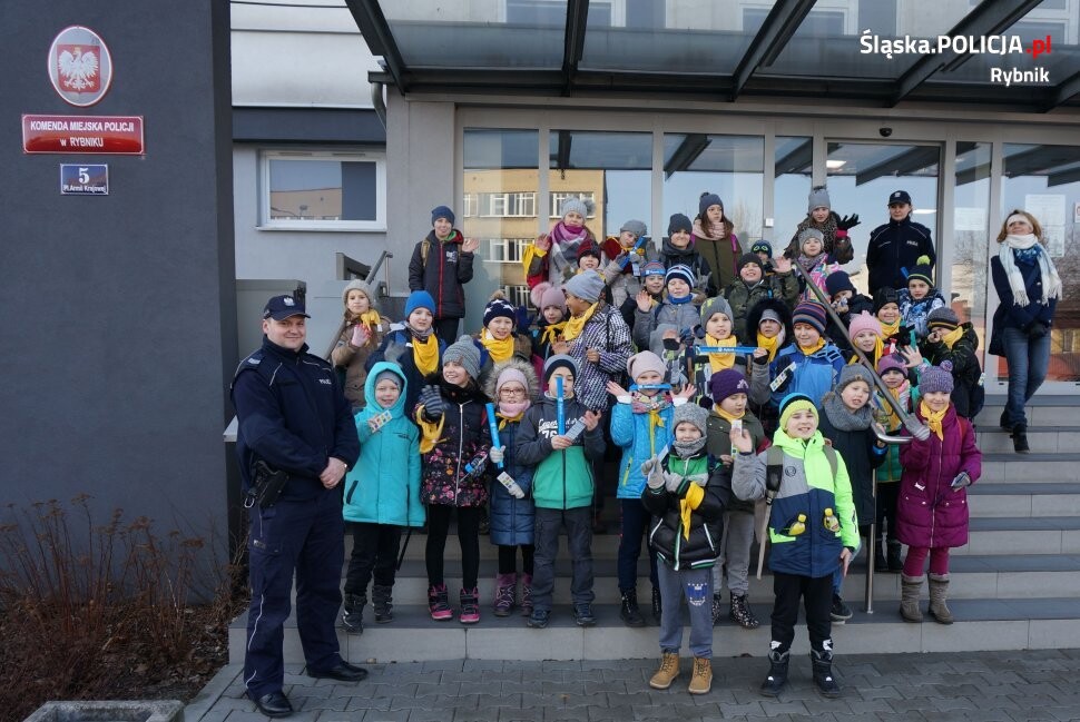 Wczoraj rybnickich stróżów prawa odwiedziły dzieci uczestniczące w półkoloniach. Nasi mali goście zwiedzili budynek komendy. Zobaczyli dyżurkę – najważniejsze miejsce każdej jednostki Policji oraz przyjazny pokój. Najmłodsi dowiedzieli się także, na czym polega praca policjantów. Podczas spotkania sierż. sztab. Dariusz Jaroszewski przypomniał najmłodszym o bezpieczeństwie podczas trwających ferii. Zwracał uwagę na zagrożenia płynące z nierozsądnego postępowania oraz zagrożeń z jakimi młody człowiek może się zetknąć podczas zimowego wypoczynku. Młodzi mieszkańcy Rybnika dowiedzieli się także o czym należy pamiętać podczas zabaw na śniegu i lodzie, a także gdzie bezpiecznie jest uprawiać sporty zimowe. Nie zabrakło również porad w jaki sposób bezpiecznie spędzać ferie w domu. O zasadach bezpieczeństwa w ruchu drogowym opowiadał uczestnikom spotkania policjant z rybnickiej drogówki, który na zakończenie spotkania wręczył dzieciom elementy odblaskowe. Spotkanie z mundurowymi odbyło się w ramach akcji „Bezpieczne Ferie 2018”.