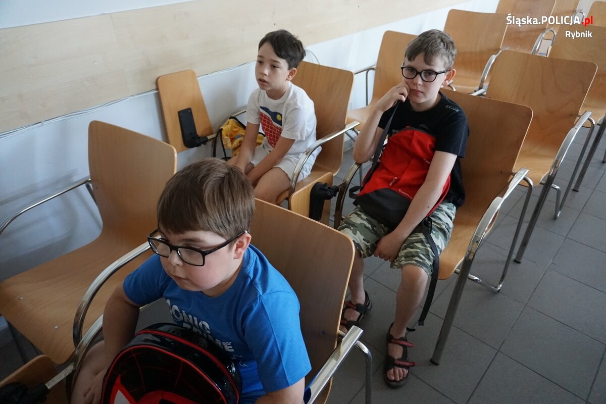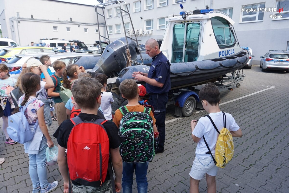 Rybnicką komendę odwiedziły dzieci ze Szkoły Podstawowej nr 34 w Rybniku. Najmłodsi wysłuchali prelekcji na temat bezpieczeństwa podczas letniego wypoczynku, a także bezpiecznego poruszania się po drodze. Dzieci miały okazję obejrzeć pomieszczenia budynku, poznać pracę mundurowych oraz z bliska zobaczyć sprzęt wykorzystywany w codziennej służbie. Spotkanie z policjantami odbyło się w związku ze zbliżającymi się wakacjami oraz w ramach kampanii „Kręci mnie bezpieczeństwo nad wodą”.