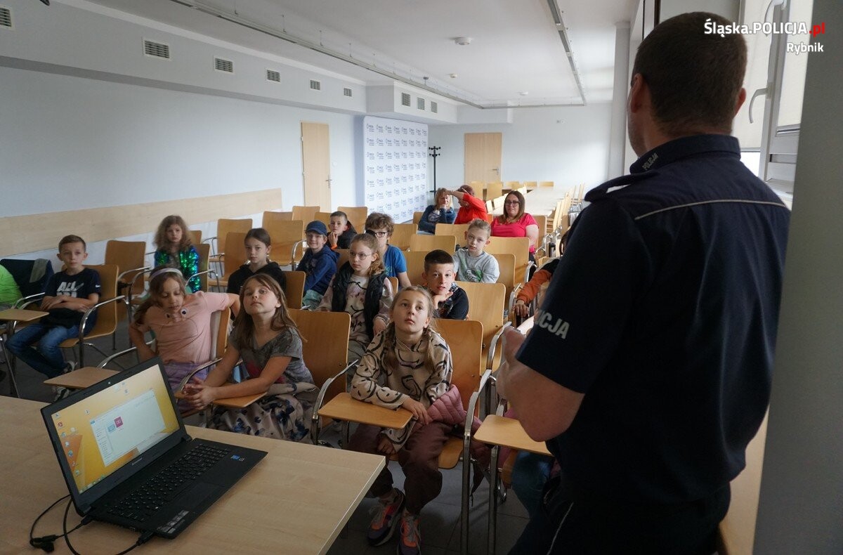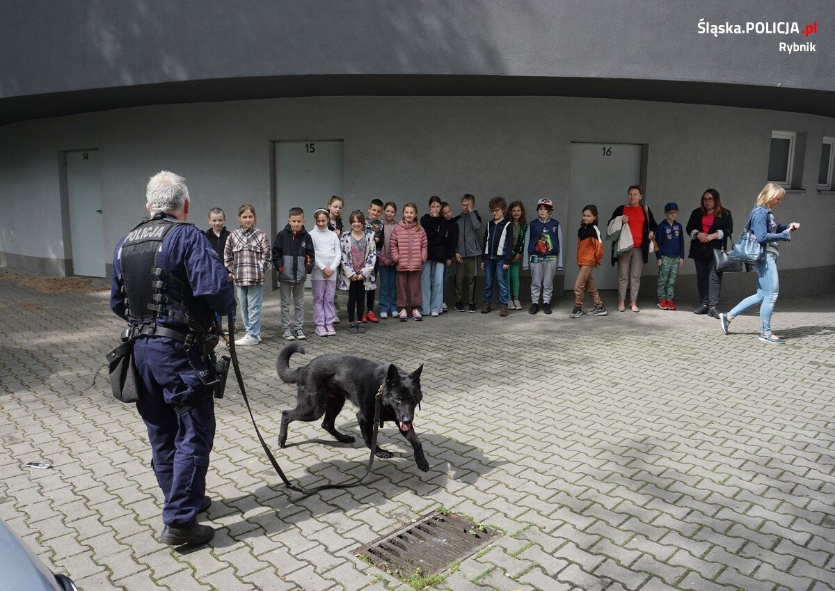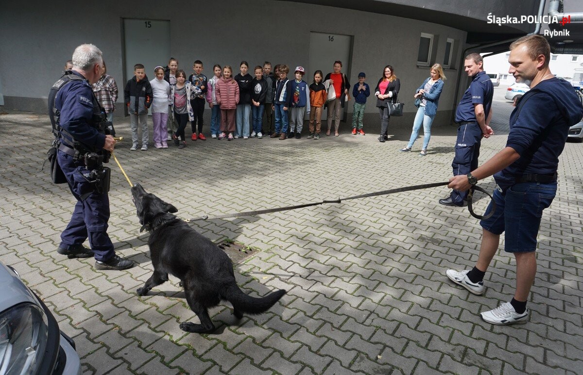 Dzieci ze szkół i przedszkoli dość często odwiedzają rybnicką komendę. Podczas takich odwiedzin policjanci pokazują najmłodszym oznakowane pojazdy policyjne — radiowozy, motocykle, oprowadzają „małych gości” po komendzie. W trakcie zwiedzania mundurowi opowiadają, czym zajmują się na co dzień stróże prawa poszczególnych wydziałów. Wizyta w komendzie zawsze budzi wielkie emocje wśród najmłodszych. Tak też było i tym razem. Nasi mili goście z Zespołu szkolno — przedszkolnego numer 5 w Rybniku, mieli okazję zwiedzić budynek komendy. Najmłodsi dowiedzieli się także, na czym polega praca policjantów. Dużym zainteresowaniem wśród dzieci cieszył się policyjny przewodnik i jego pupil. Pies służbowy wywołał wiele pozytywnych reakcji wśród odwiedzających komendę. Przewodnik opowiedział o swojej służbie oraz na co dzień wykonywanych czynnościach. Ponadto w czasie wizyty mundurowi omówili zasady bezpieczeństwa i odpowiadali na pytania, tłumacząc najmłodszym, jak zadbać o swoje bezpieczeństwo w domu, na zakupach czy spacerze z rodzicami oraz w kontaktach z obcymi osobami i w przypadku spotkania z obcym zwierzęciem. Całe spotkanie upłynęło w miłej atmosferze, łącząc naukę z zabawą.