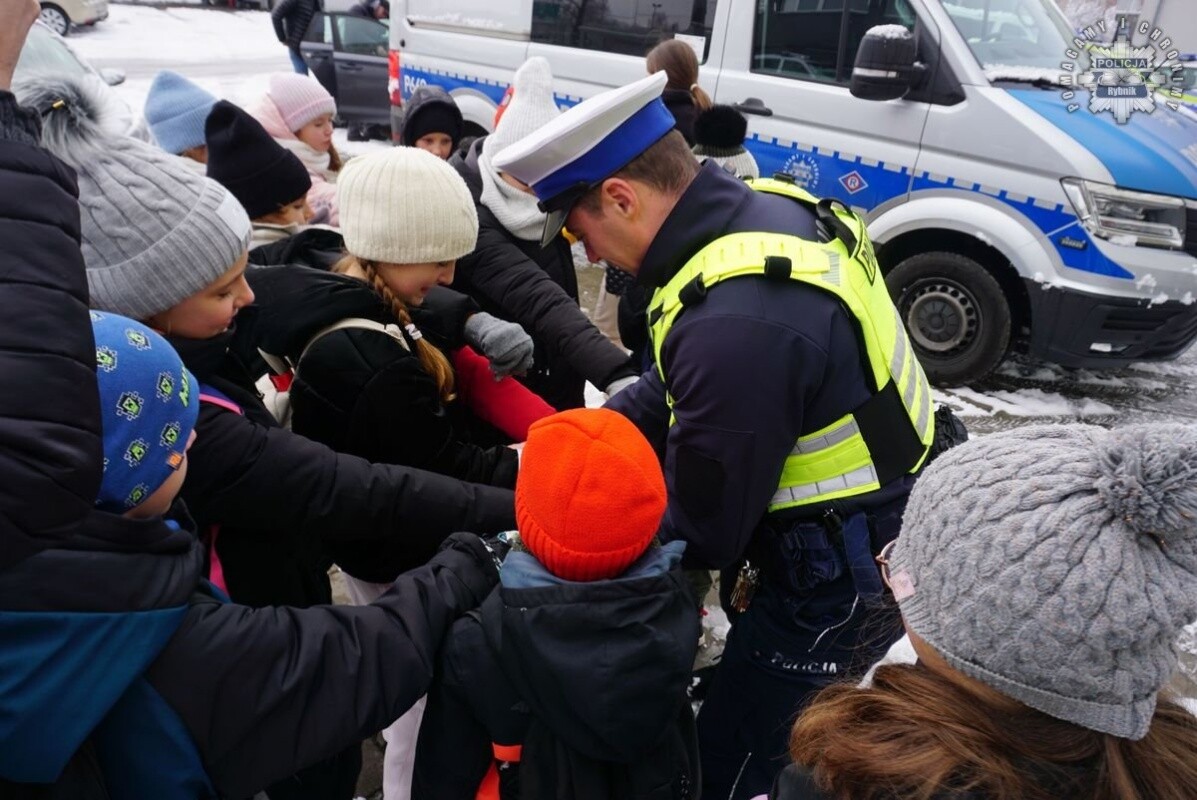 Na zakończenie dzieci otrzymały opaski odblaskowe, które przypominają, jak ważne jest bycie widocznym na drodze, szczególnie w okresie zimowym.