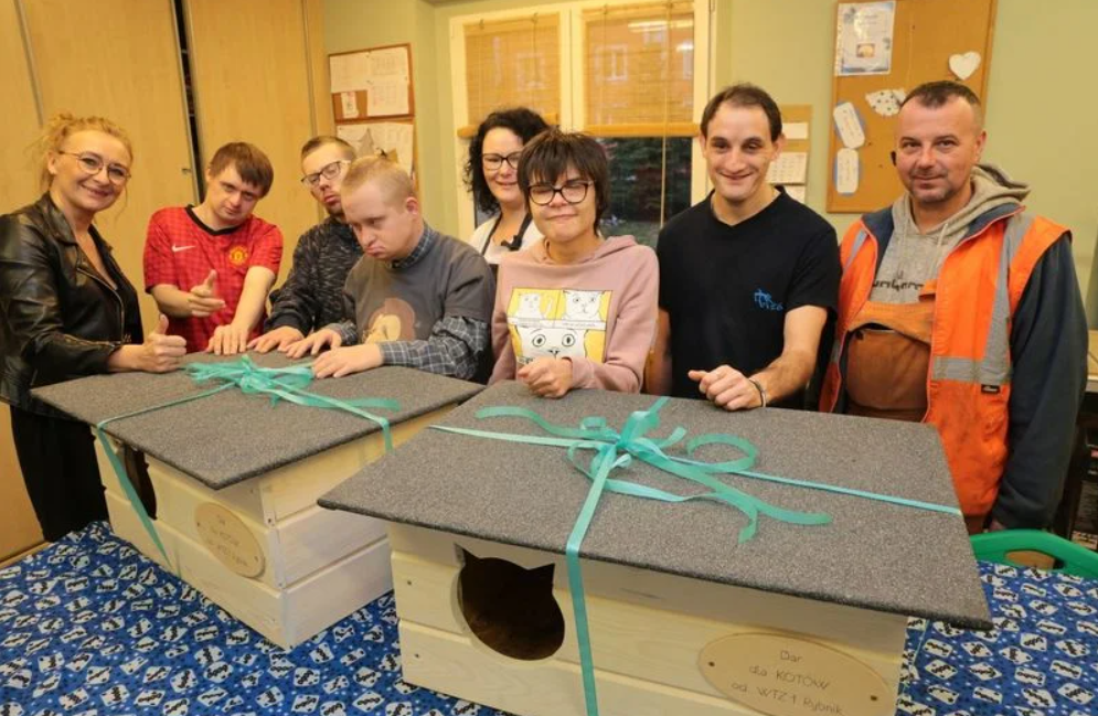 - Uczestnicy WTZ zawsze chętnie włączają się w akcje pomocy zwierzętom, dlatego chętnie podjęli się wykonania budek – mówi Lidia Moc, przewodnicząca Zarządu Koła Polskiego Stowarzyszenia na rzecz Osób z Niepełnosprawnością Intelektualną w Rybniku. – Wykonali razem 3 budki z materiałów do terapii, których używają uczestnicy w pracowniach. Wykonanie budek dla kotów to pierwsza taka akcja przeprowadzona przez WTZ-ty. Takie działania uwrażliwiają naszych uczestników na los bezdomnych kotów, zwierząt - zaznacza L. Moc.
